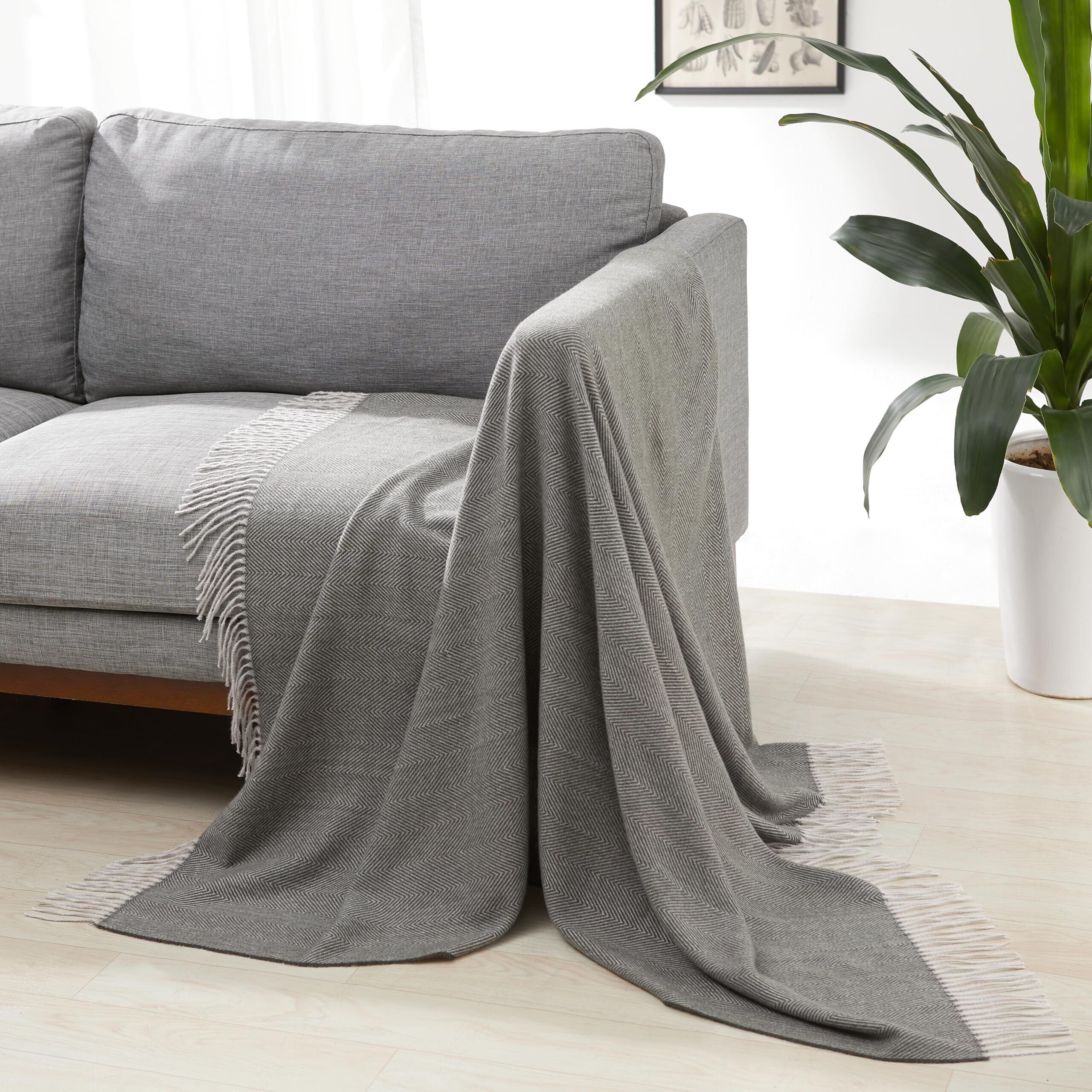 50 x 60インチの心地よいスローブランケット。質感のあるヘリンボーンパターンとフリンジエッジ。