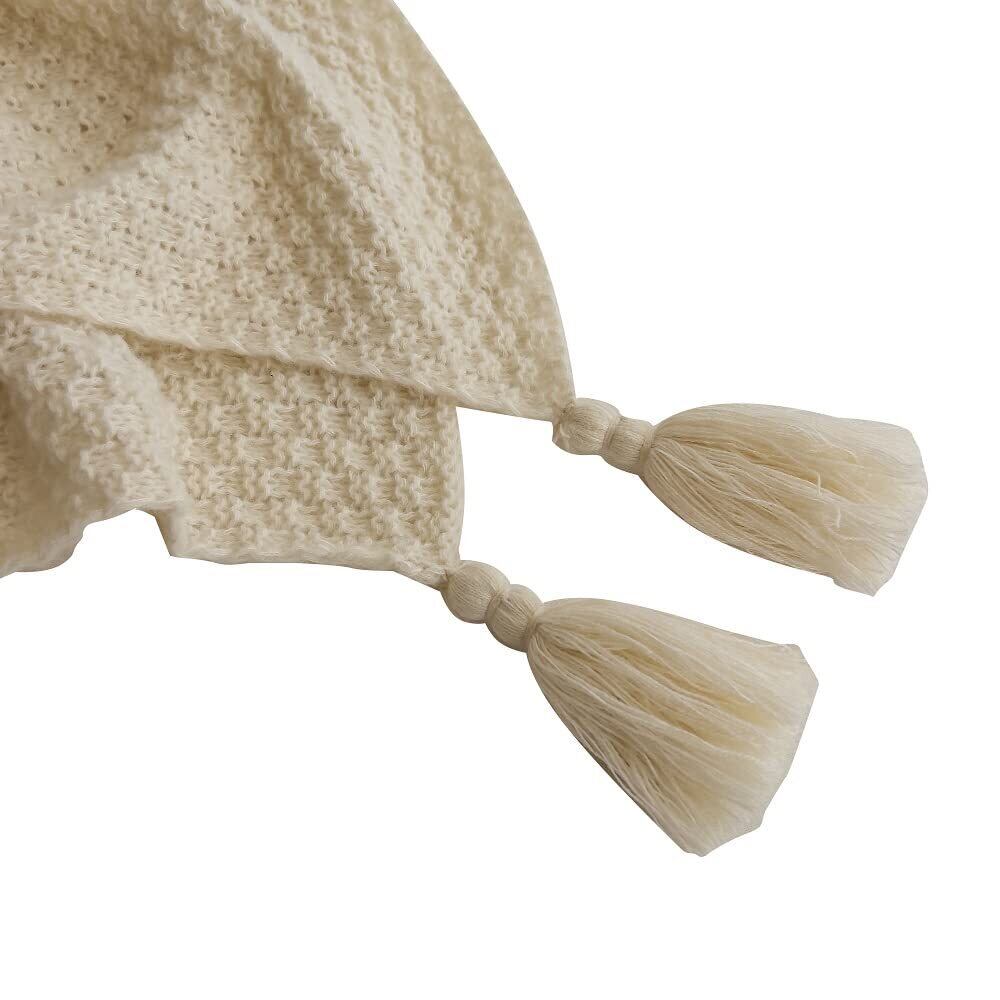 掛け毛布 大判 防寒 かわいい ひざ掛け プレゼント 通年使用 暖かい 肩掛け 防寒 フリンジ付き (ベージュ, 170 x 130 cm)