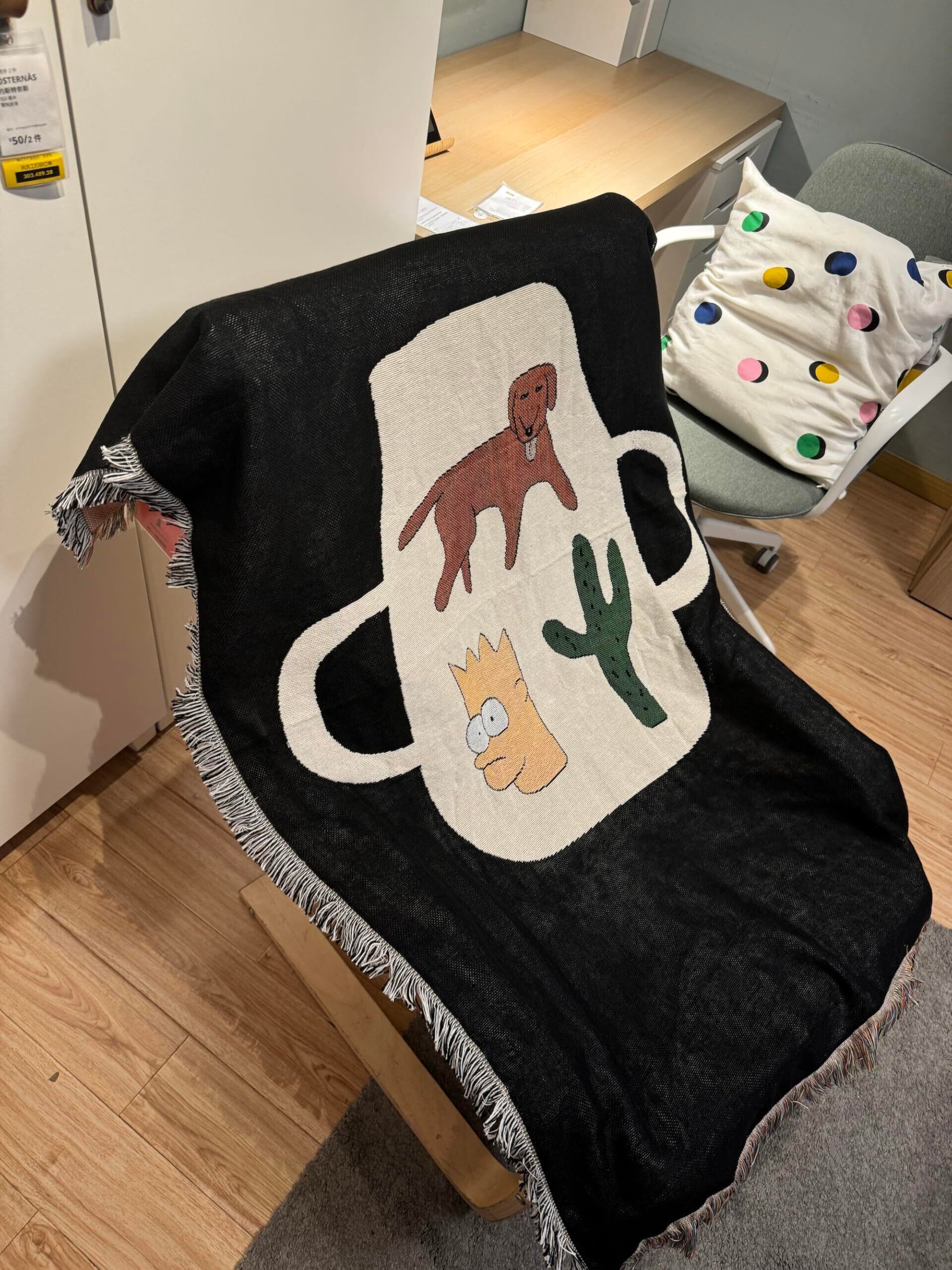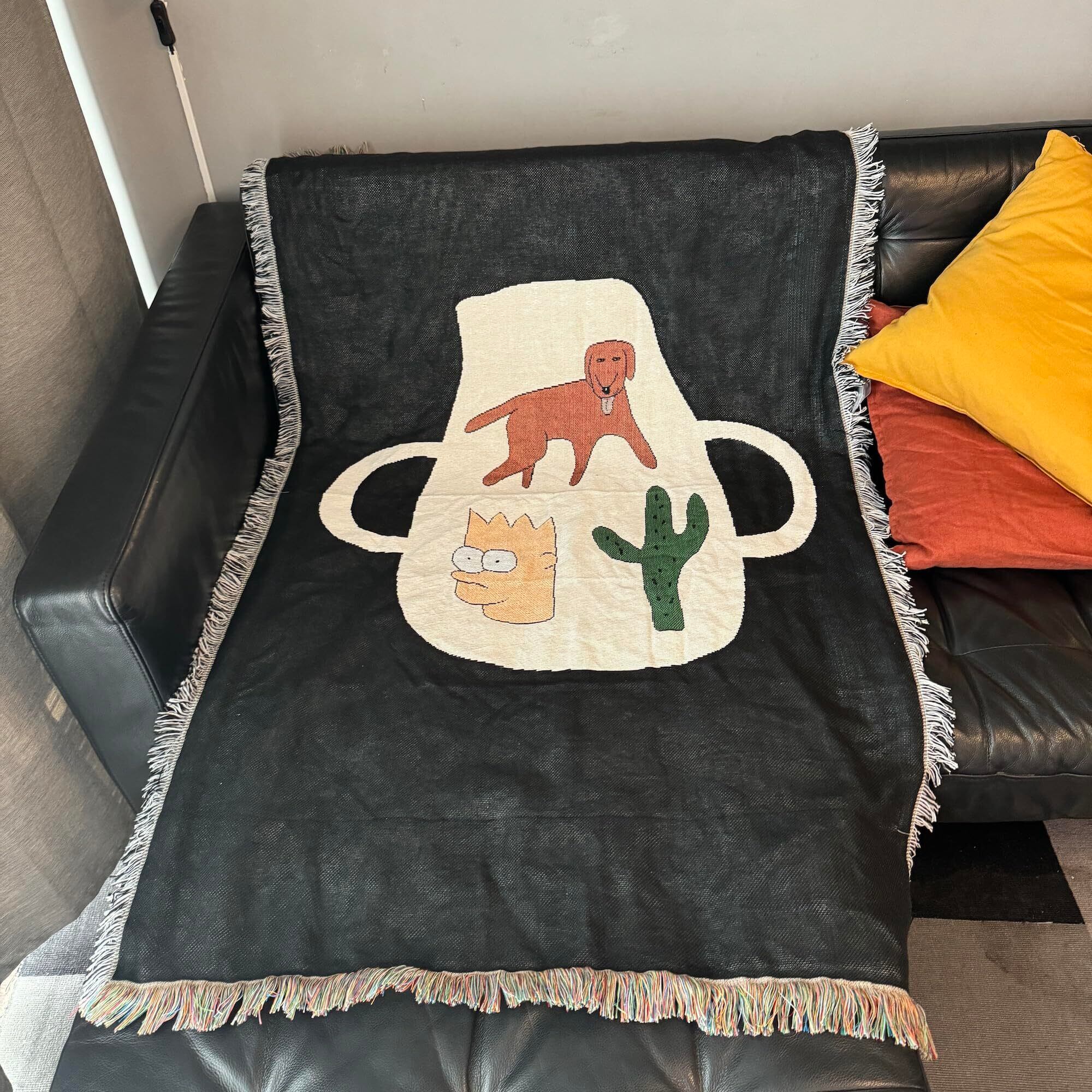 シンプソンズ⁉︎の絵柄が可愛い、しっかりとした生地のラグです。 肌触りも良いので膝掛けだったり、ソファに掛けて使用しても良いですね。
