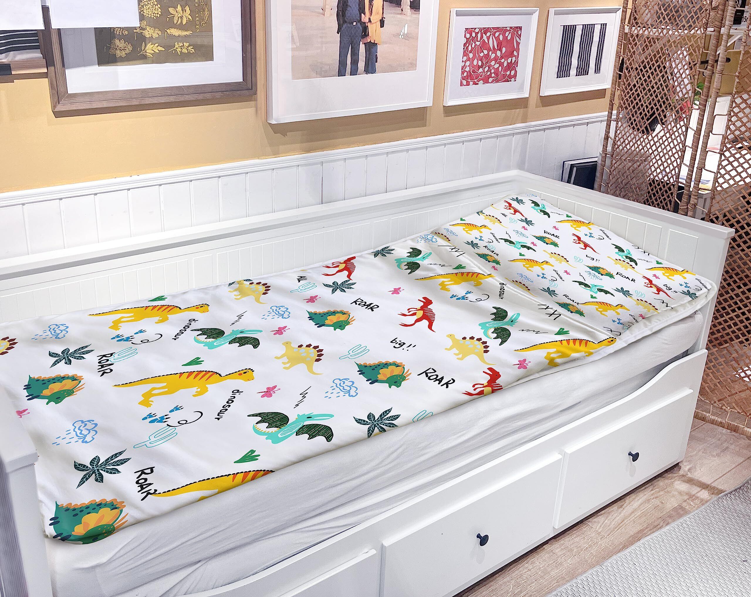布団の絵柄が多様で、様々な子供の好みに対応できます。恐龍柄、ゲーミングは子供たちの大好物です