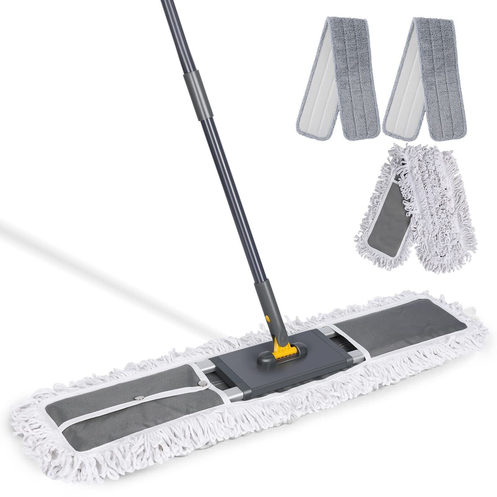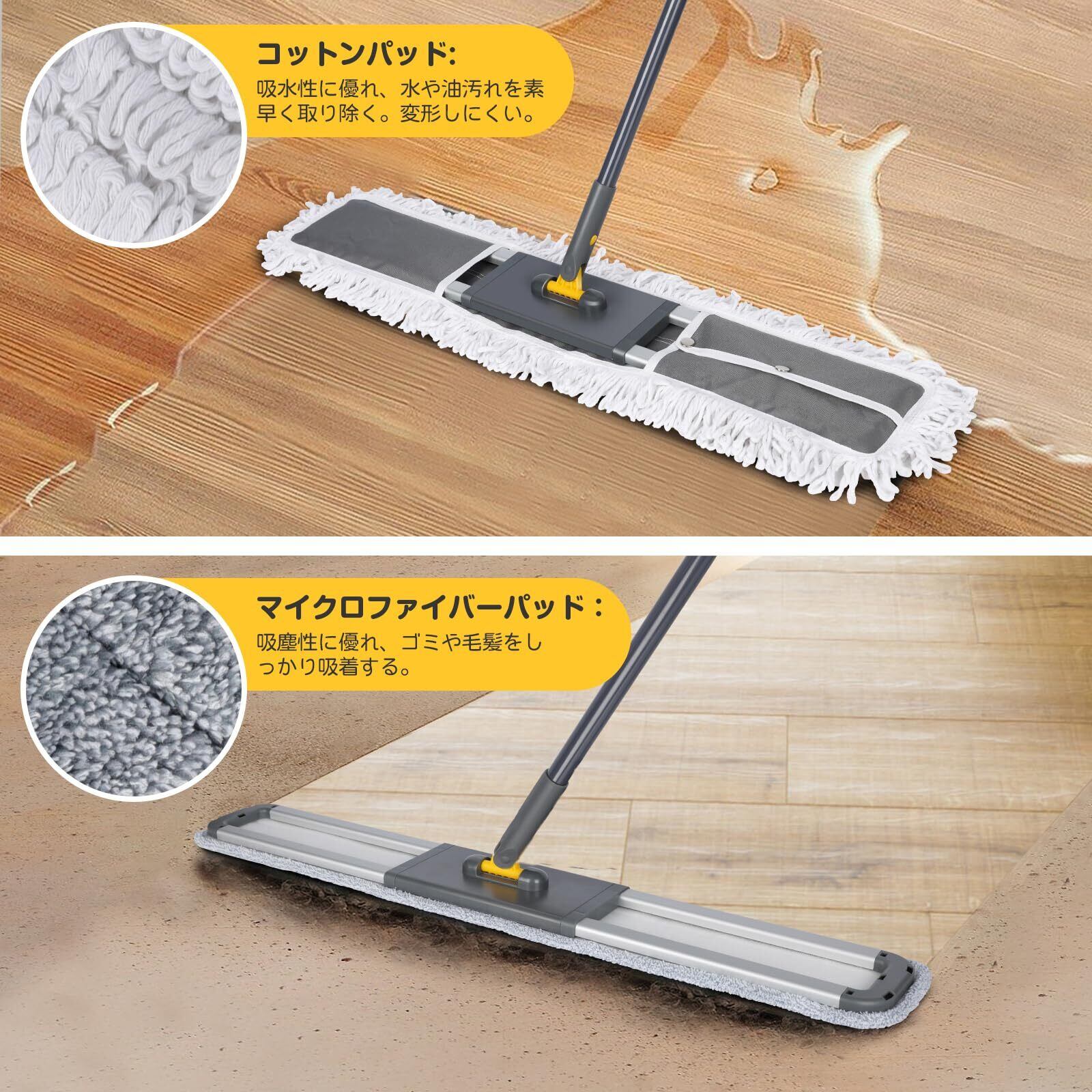 ZNM 大型フロアモップ クイックルワイパー モップ 拭き掃除 長さ調節可能 乾湿両用 マイクロファイバーモップクロス2枚、ベールモップクロス1枚付属 家庭用/オフィス用/レストラン用クリーニングに最適