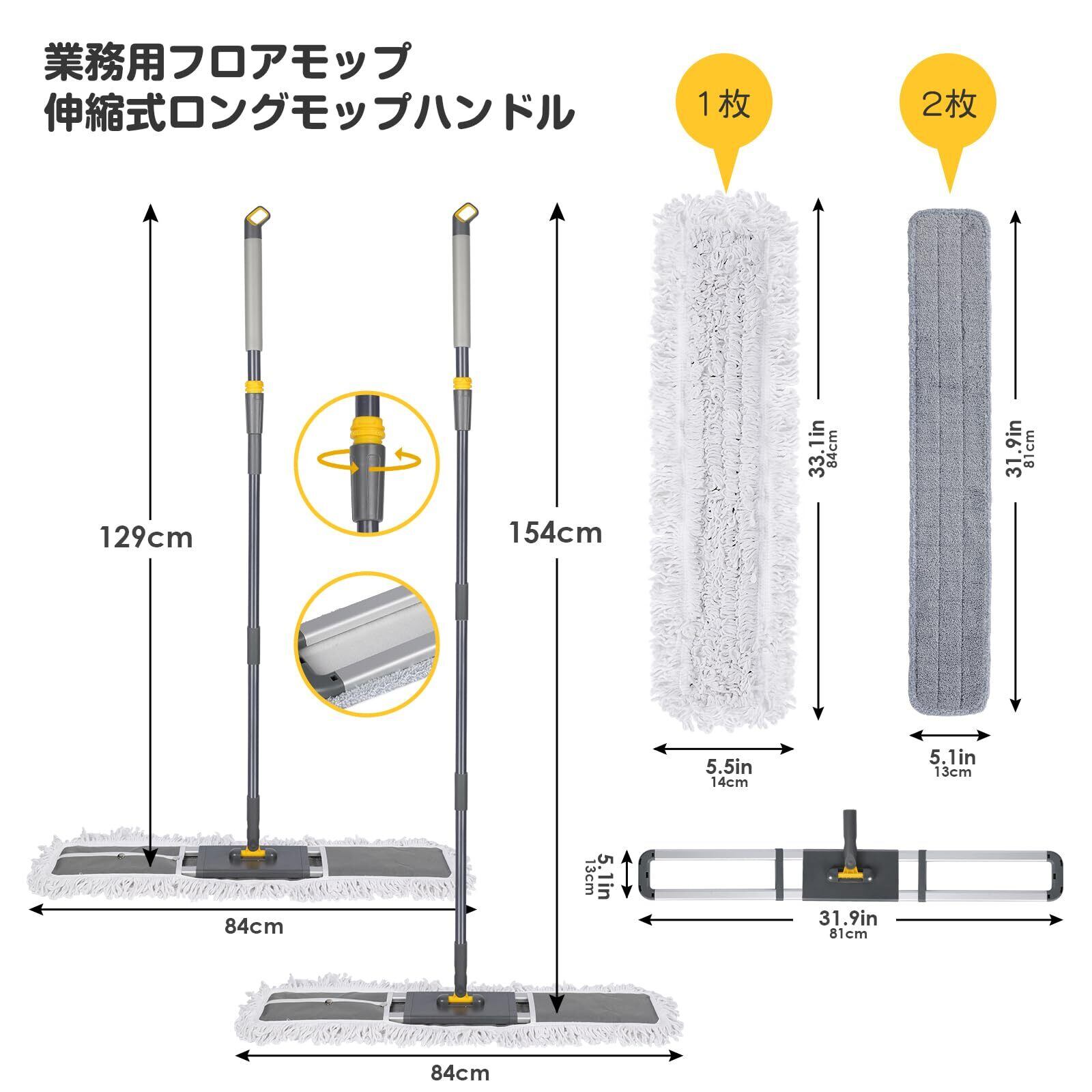 【大型フロアモップ】フロアモップサイズ:84*11*154cm 80cm幅の大型モップヘッドで広い範囲を掃除でき、掃除時間の短縮と掃除効率の向上に貢献します。