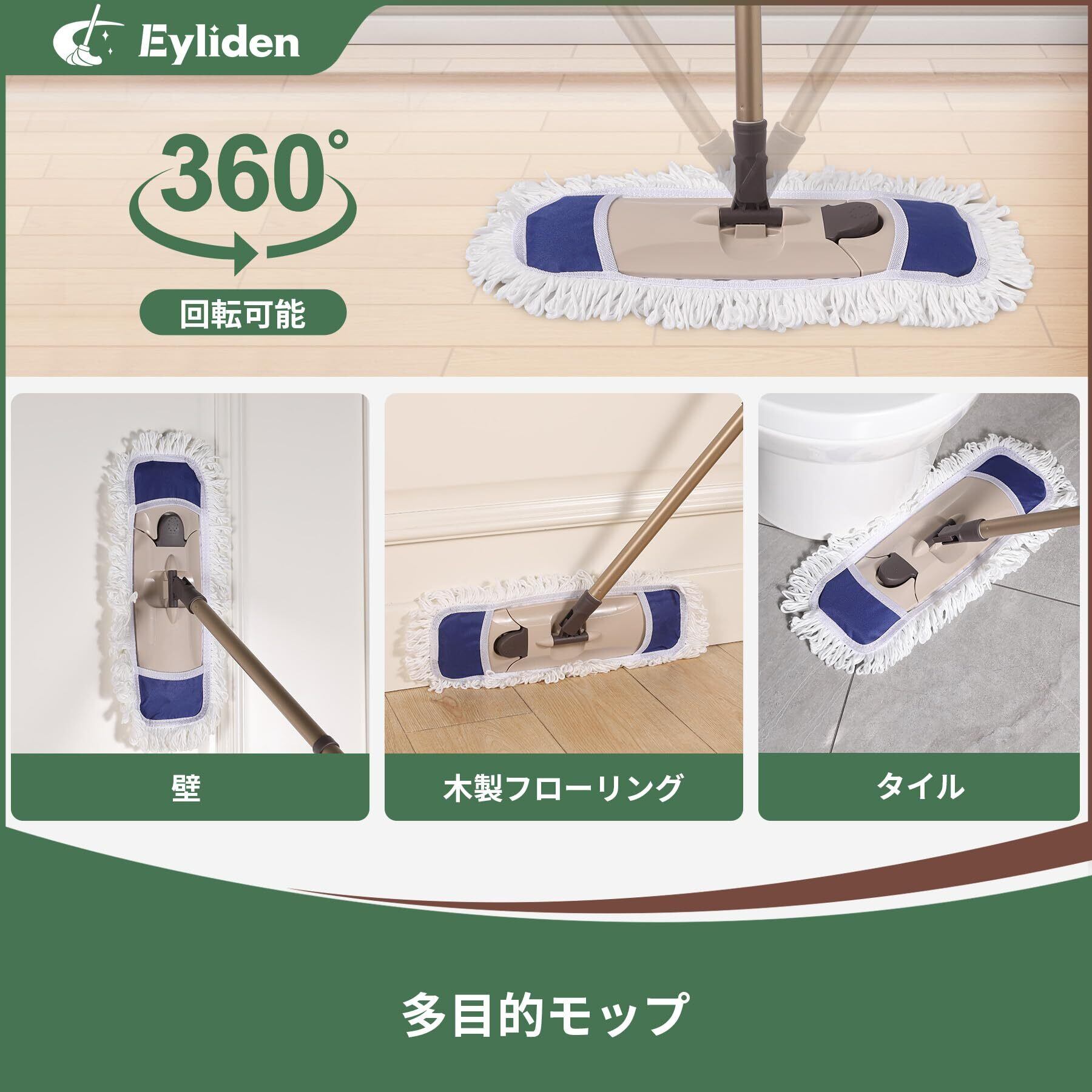 Eyliden フロアモップ 水拭き モップ 拭き掃除 乾拭き 掃除モップ 業務モップ フローリング 乾湿両用 3種類モップクロス 取替用 収納便利 360度回転 約117~143cm伸縮可能 腰に負担なし 床を保護 片手操作 ベランダ 玄関 床 庭園 風呂