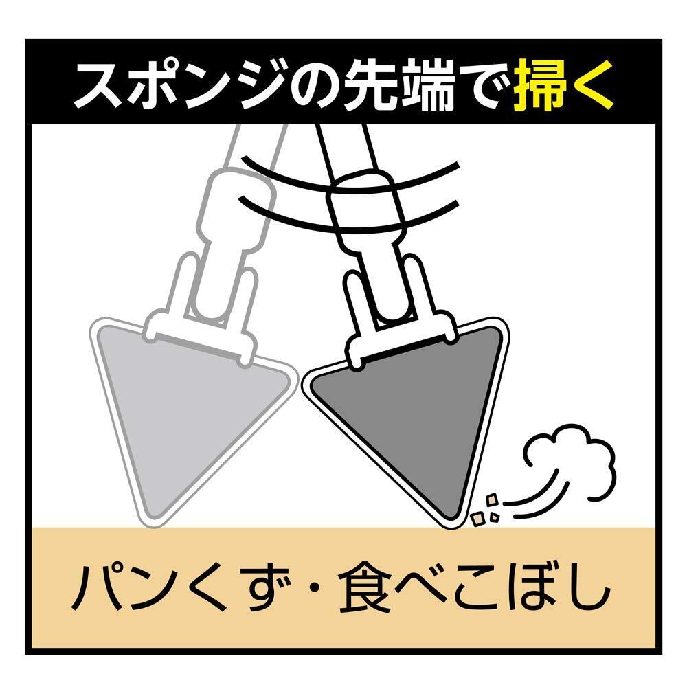 市販されている一般的なフローリングワイパーと違い、三角形状のスポンジヘッドを採用したフローリングワイパーです。使い方は市販品と同様に、シートを巻き付けて差し込むだけ。市販品よりも軽く、しかも床面、スミにもしっかりフィットするので効率的。スポンジヘッドの先端部分で掃くようにお掃除することもできるので、シートで取り切れなかったホコリやごみも簡単に集めることができます。