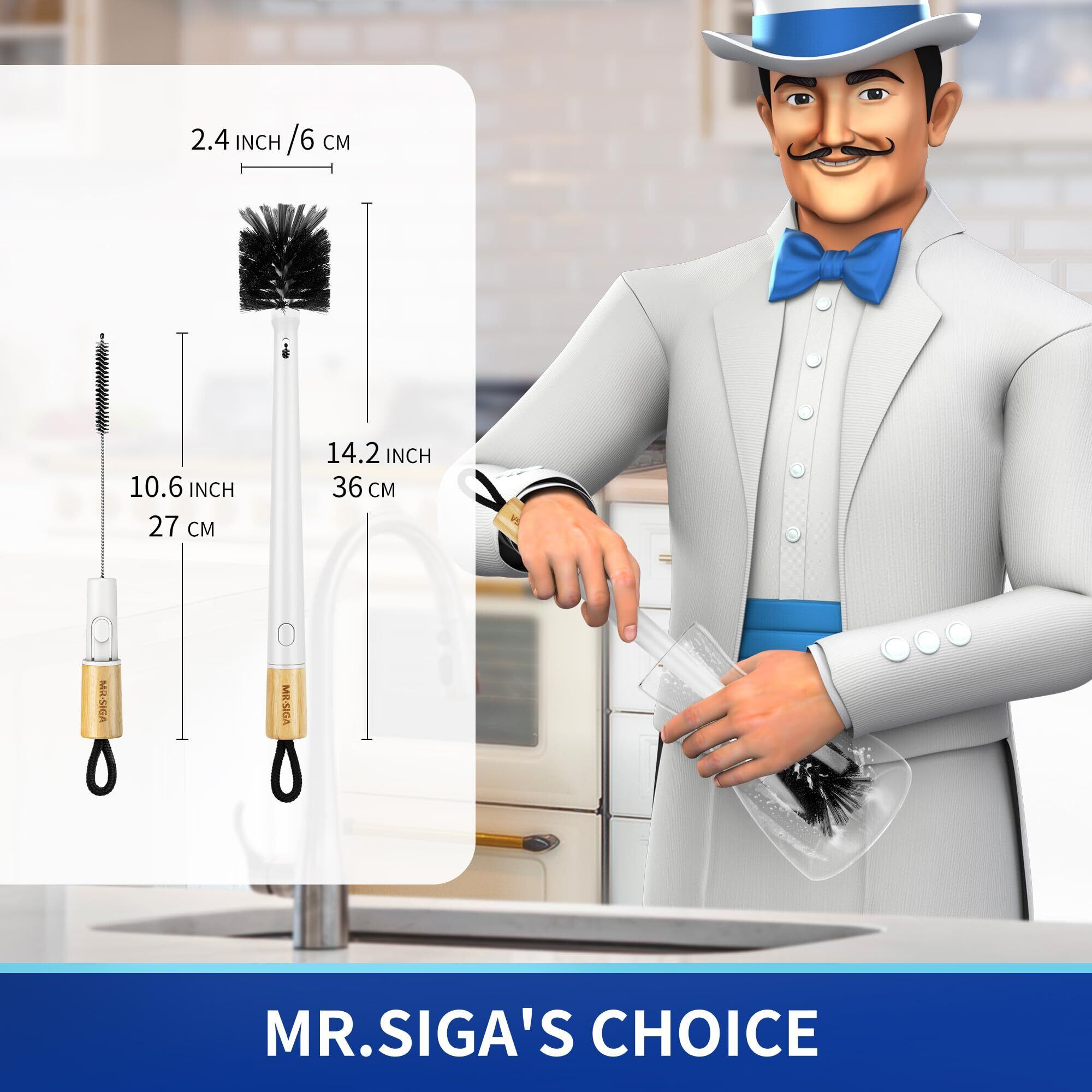 MR.SIGA ボトル洗浄2in1ブラシ(ストローブラシ内蔵)、長柄ボトルクリーナー、瓶洗い、ストロー用2in1ボトル洗い