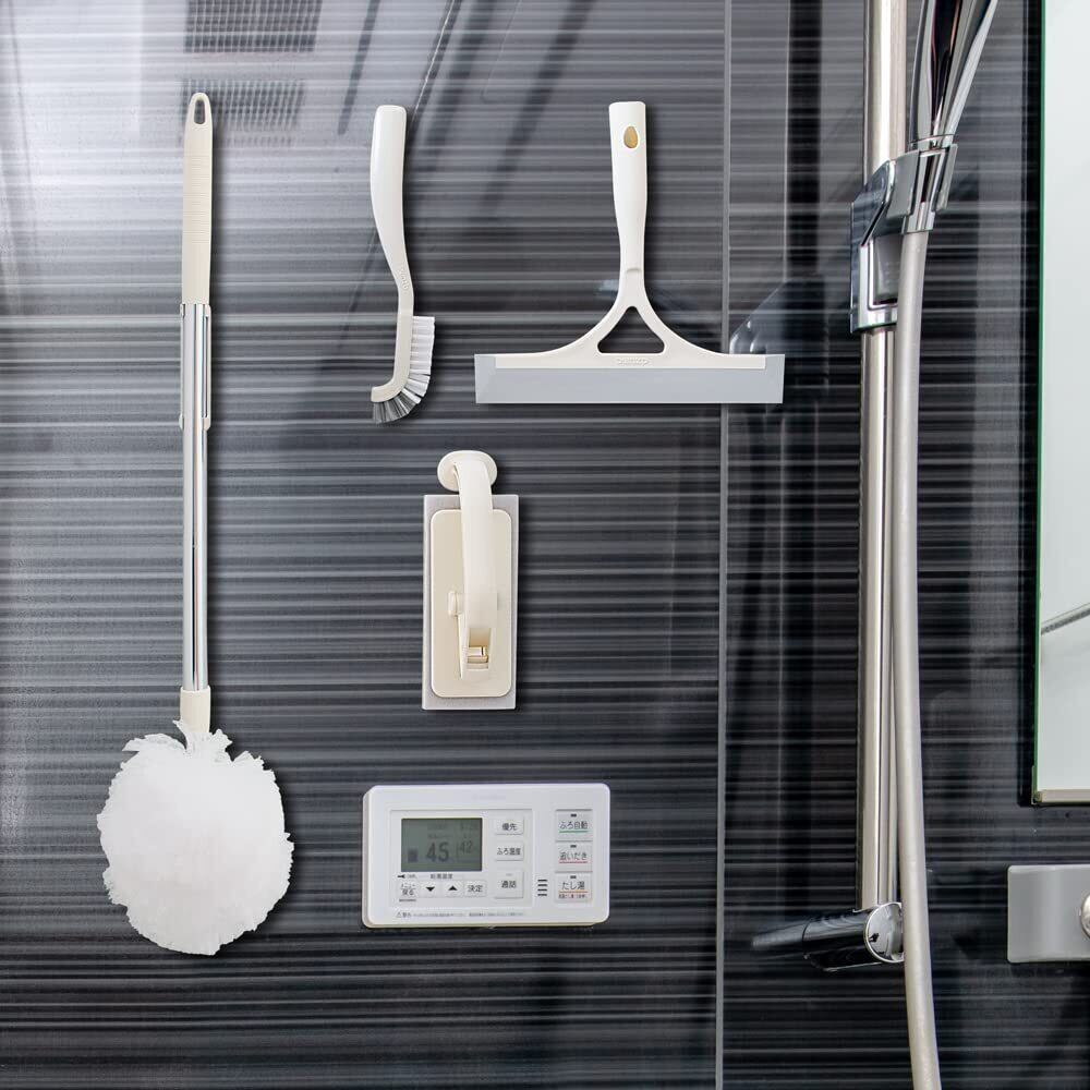 ブラシには便利な磁石がついており、壁にペタッとくっつけて収納可能。掃除の後もサッと元の位置に戻せて、場所を取らずスッキリとした浴室環境を維持できます。