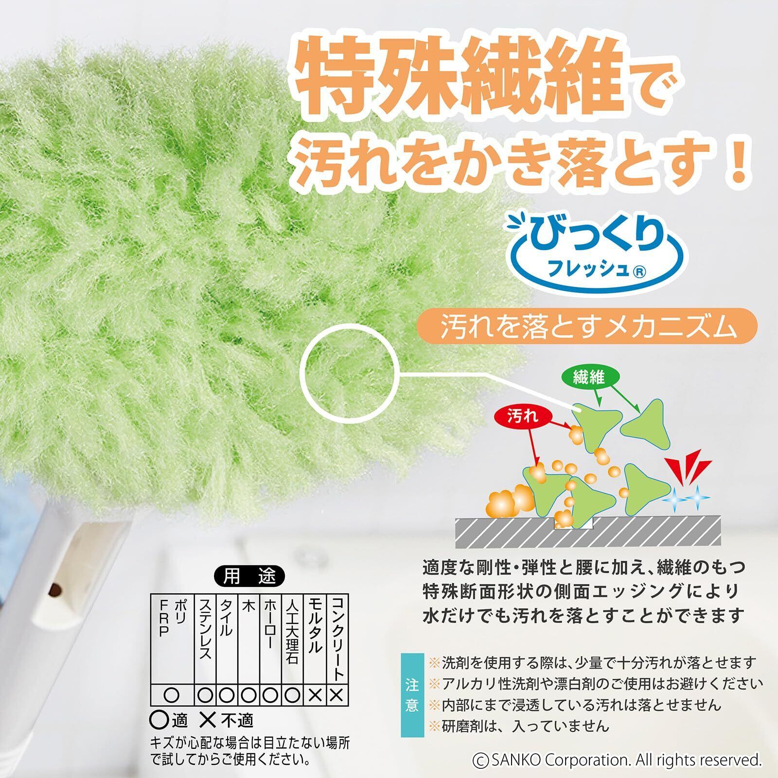 サンコー 浴室掃除用 ブラシ ジョイント式 お風呂びっクリーナー グリーン 水だけでも汚れが落とせる特殊繊維 びっくりフレッシュ BO-51