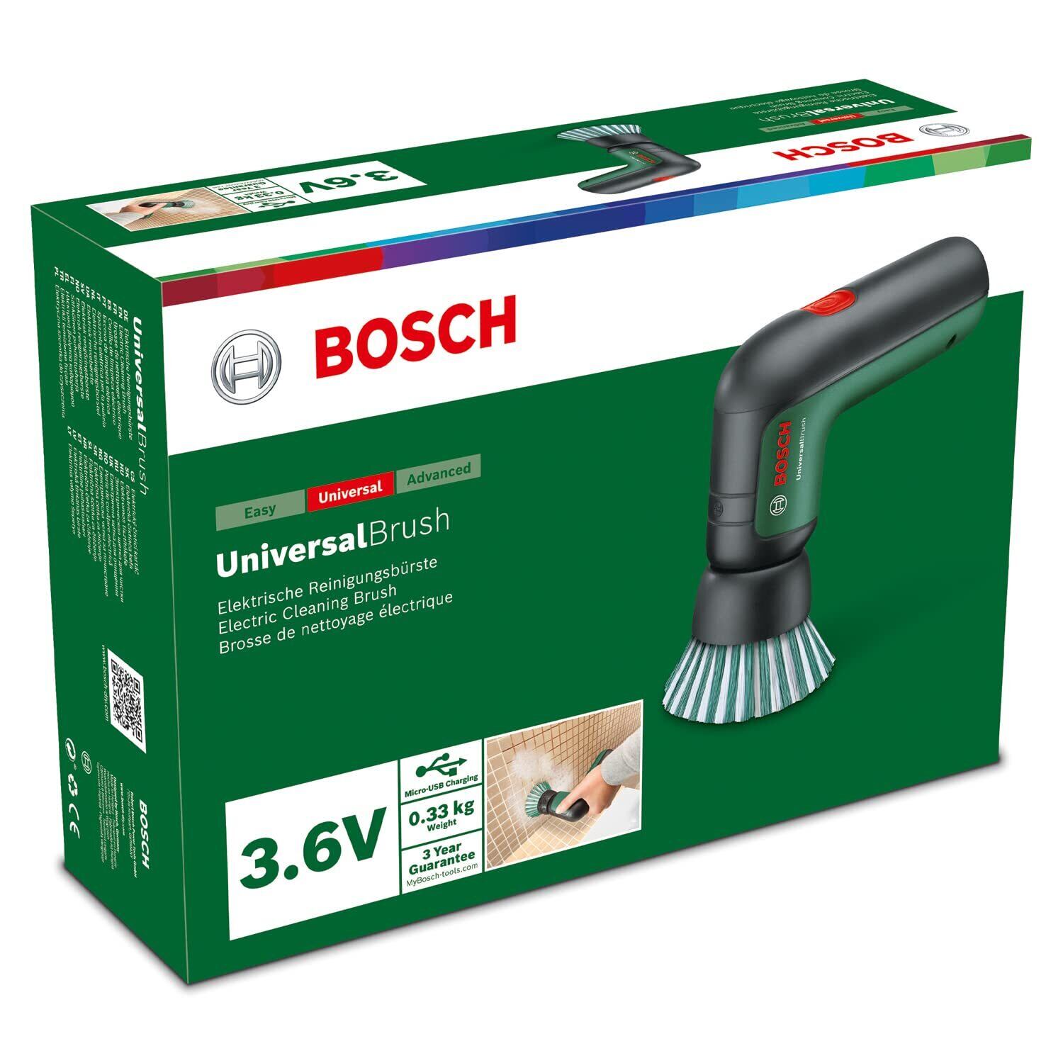 Bosch DIY(ボッシュ) 3.6Vコードレスクリーニングブラシ(本体、硬質ブラシ、ディティールブラシ、パットホルダー、ハード磨きバッド、ソフト磨きパット 、MicroUSBケーブル付) BRUSH 防水機能 水回りのお掃除