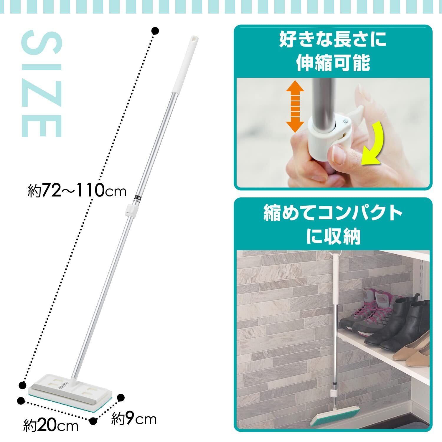 伸縮タイプ(72~110cm)なので立ったままラクラクお掃除。コンパクトに収納できます。