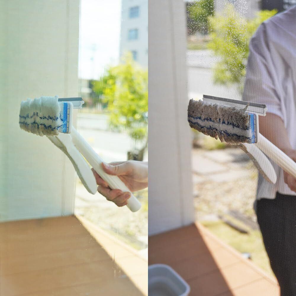 特別に設計されたワイパー部分は水をしっかりと拭き取り、跡を残しません。ガラスの表面はもちろん、網戸の掃除にも対応しており、日々の汚れを効率的に掻き取ります。お掃除の時間を短縮できる嬉しいアイテムです。