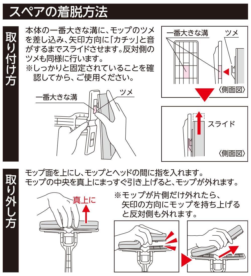 【柄付きタイプや浴室用にもラクラクチェンジ!】柄を取り付けて使用することもできます。 「安心連結」構造がついた柄が取り付け可能です。また、モップ部分を「浴室カビ取り楽絞りワイパースペアSP391」と交換すれば浴室のお掃除用品としても使用できます。