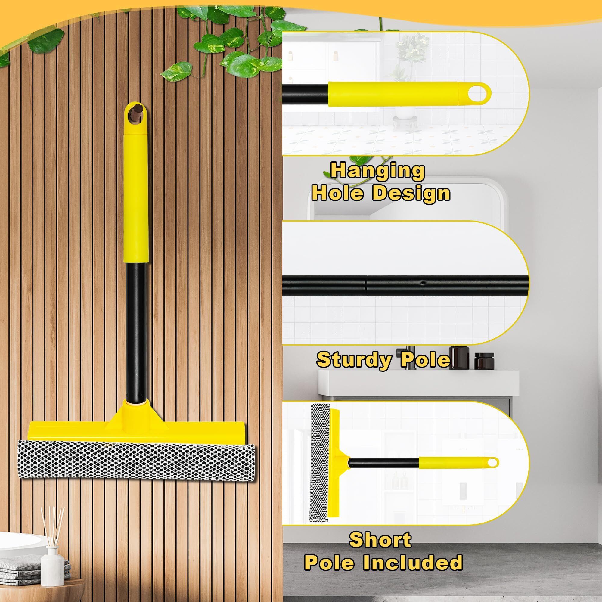 NEWE スクイジードライワイパー,スポンジ付き2in1風呂ガラスワイパー水切,窓掃除 ワイパーは,138.5cmロングポール&ショートポール付き
