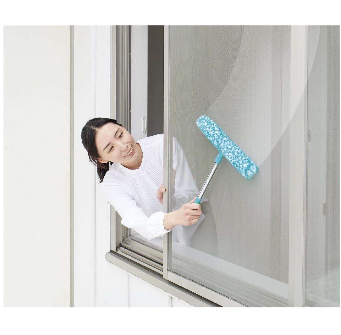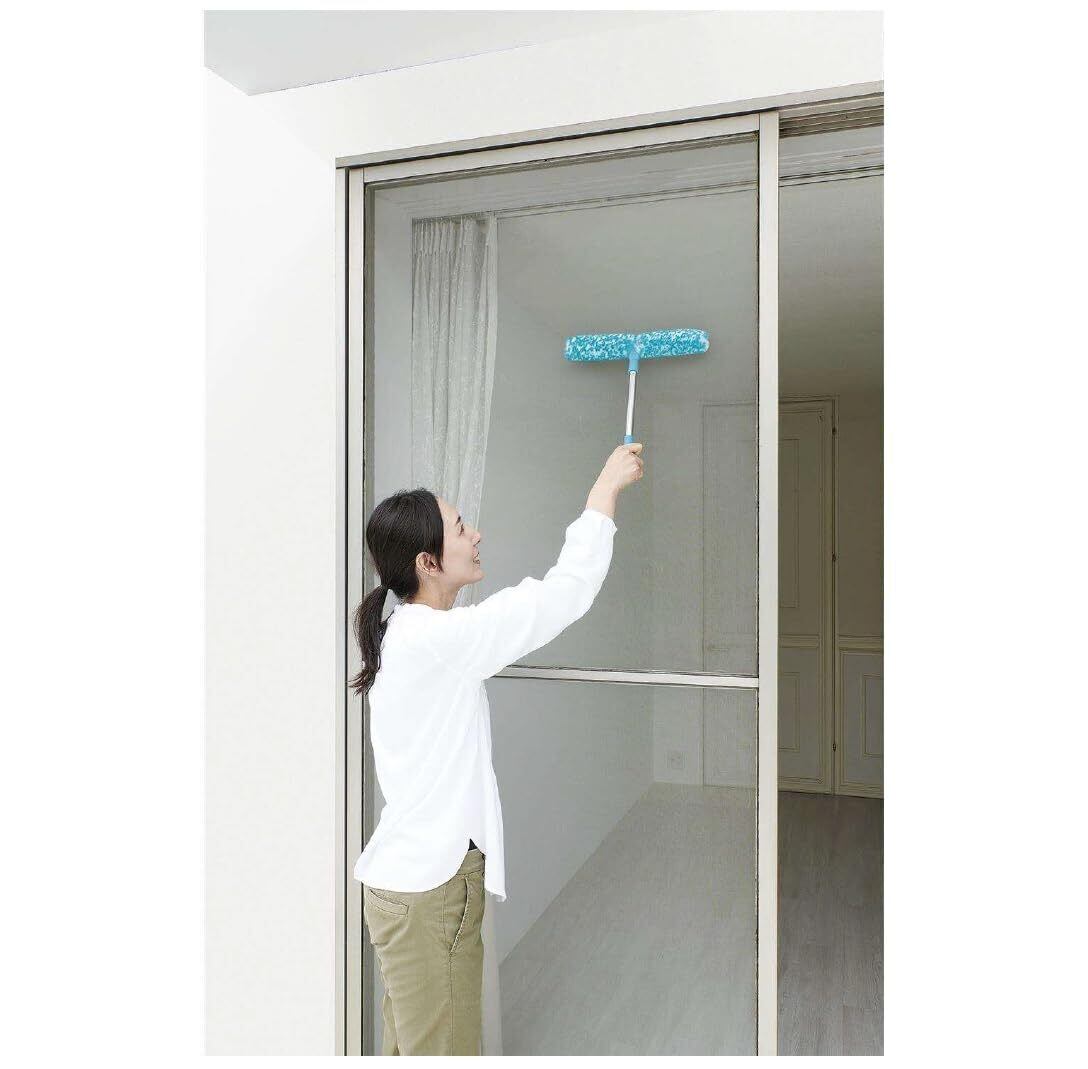 W繊維ブラシで網戸に詰まった汚れを掻き出す。 ポール付きなので、高い場もラクラク! 幅31cmでワイド設計。 サッとひと拭きするだけで、一気にきれいに。 溝にもフィットするので、サツと服だけで、細かい繊維が汚れを取り除きます。 クリーナーを使わなくても窓ガラスがきれいになるのでとってもエコ。面倒な二度拭き不要。