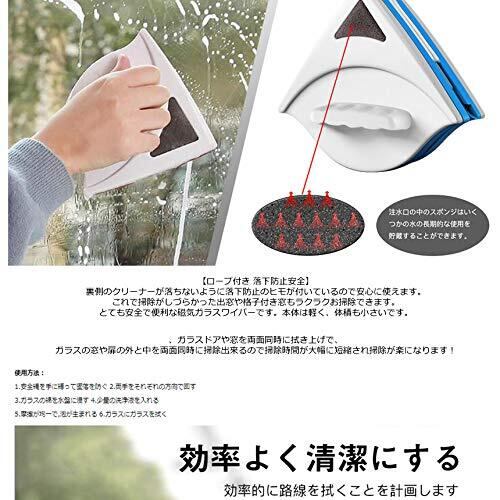 ガラスクリーナー 両面 窓ガラス掃除 窓拭き 窓掃除 網戸 掃除グッズ 窓クリーナー 落下防止ヒモ付き 磁気 ワイパーブラシ ガラス拭き seven-madkuri