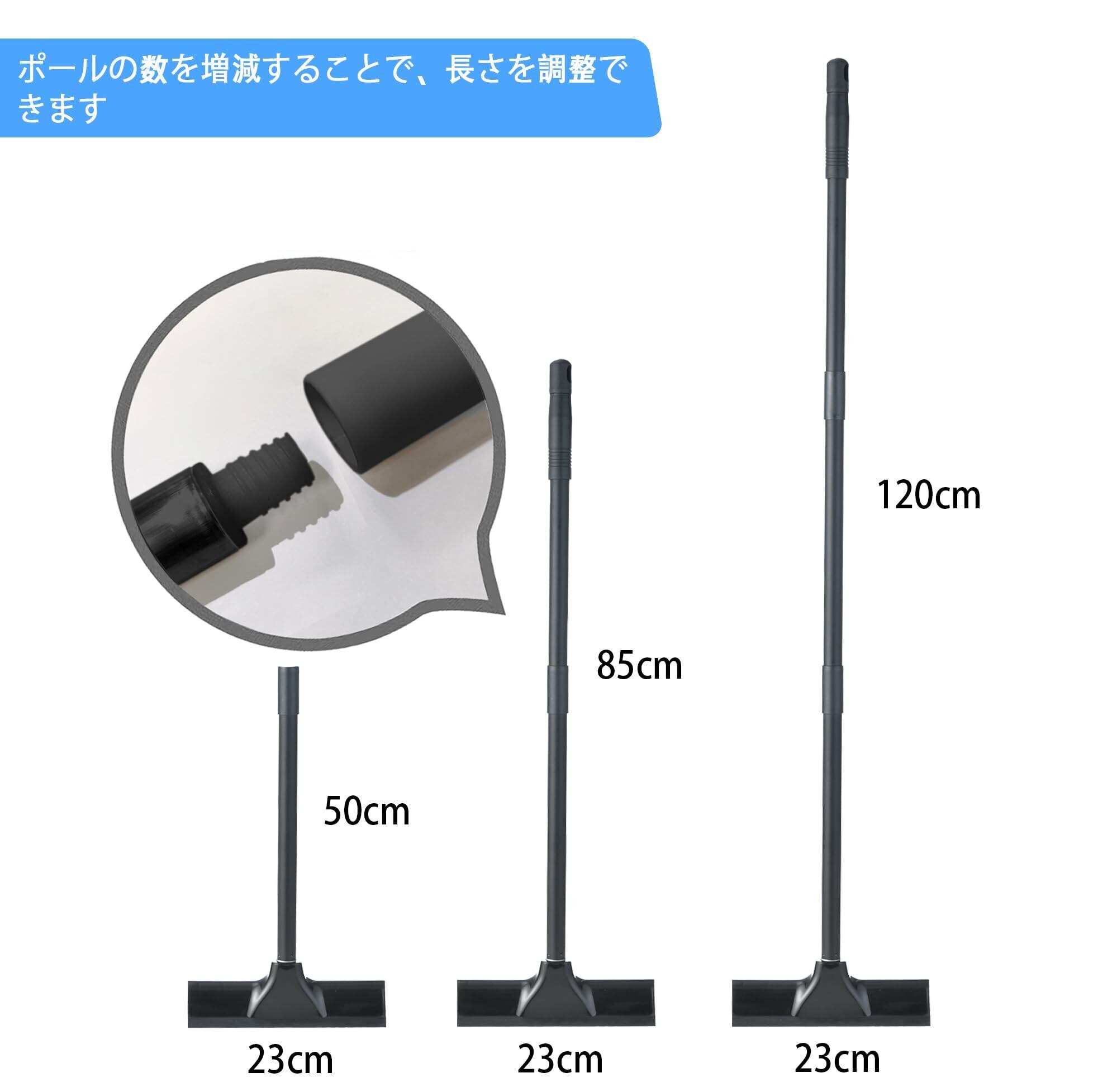 3段階に調整可能な柄により、掃除の際に無理な体勢を避けることができます。市販の長さに合わせて設定できるため、高所や狭い場所でも快適に使用できる設計です。