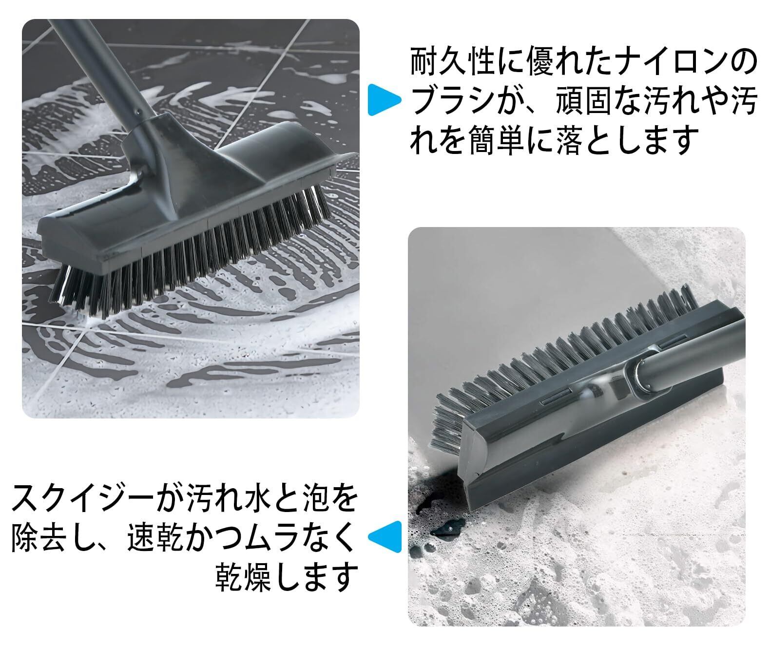 【2 in 1水切りワイパー&ブラシ設計】デッキブラシはブラシやスクレーパーとして使用でき、床をブラッシングした後は簡単に下水を掻き取ることができます。家事をするときに有効性を向上させます。