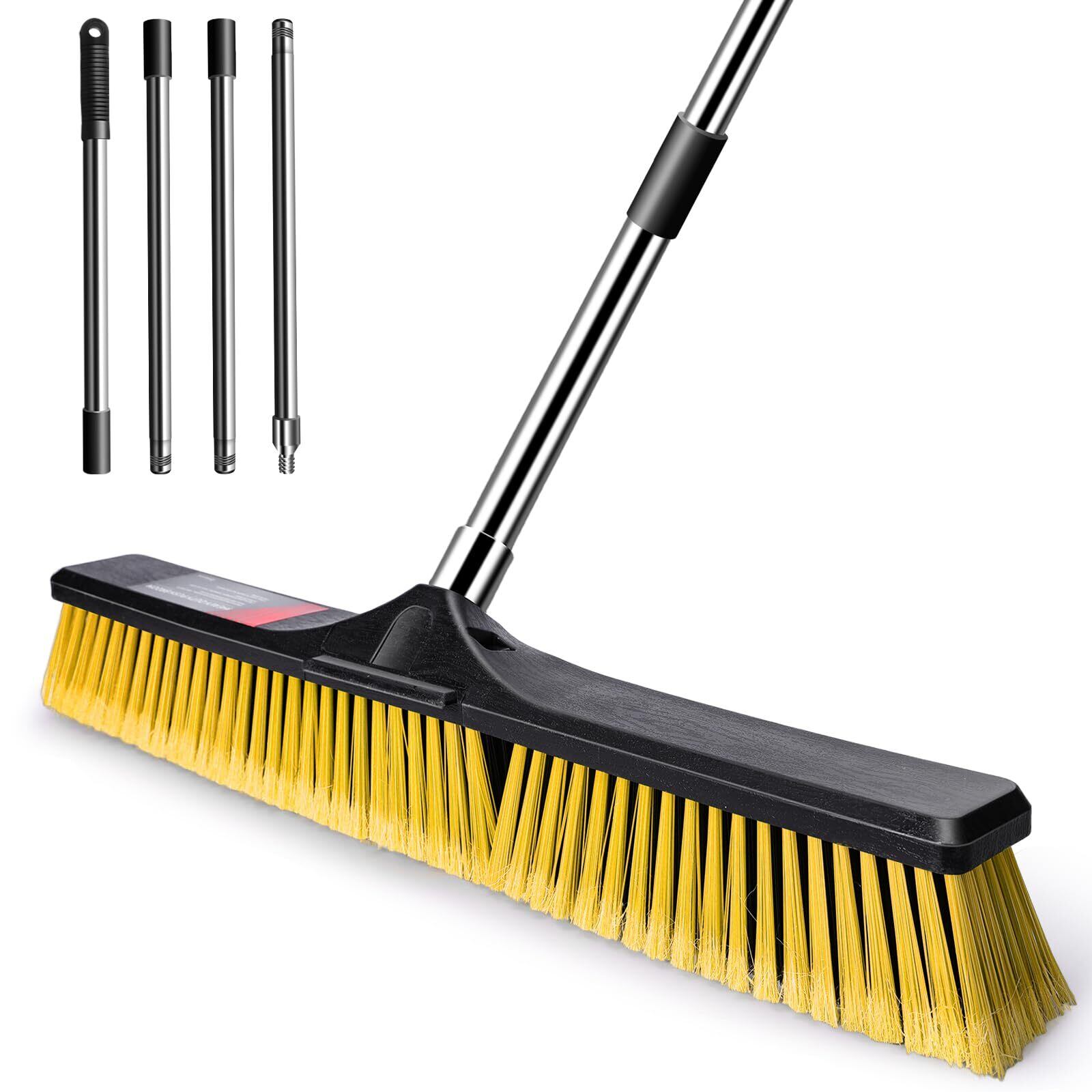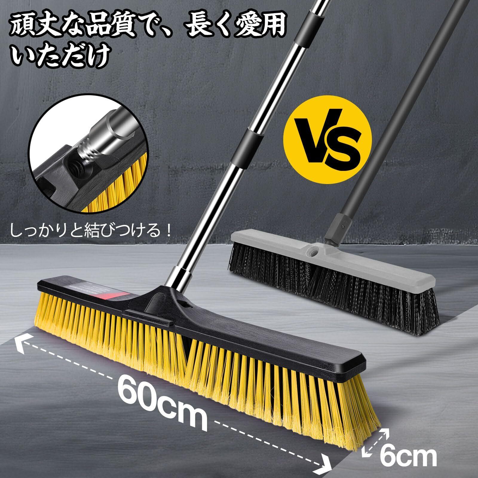 Masthome デッキブラシ 60cm広幅 業務用ブラシ ベランダ 掃除 長さ調節可能 109cm-142cm 6列超耐久ブラシ毛 屋外 庭園 床 玄関 工場 倉庫にも適用 掃除用品 オレンジ イェロー