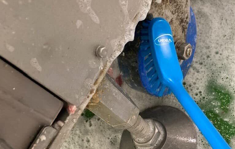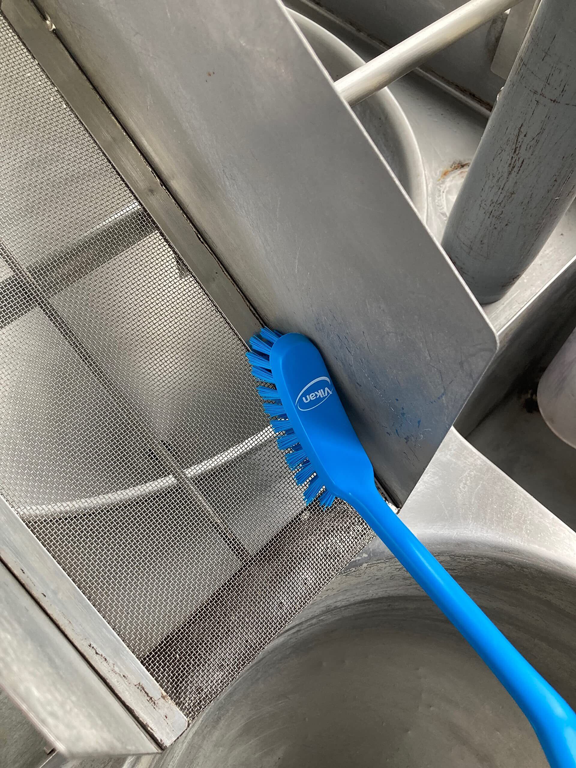【あらゆる場面の洗浄に役立つ】角度のついた持ち手とくびれ形状のブラシで、凹凸のある部分やアールがかかった箇所の洗浄も容易です。機械周り、パーツ、ザル等の容器など幅広い用途で使用できます。