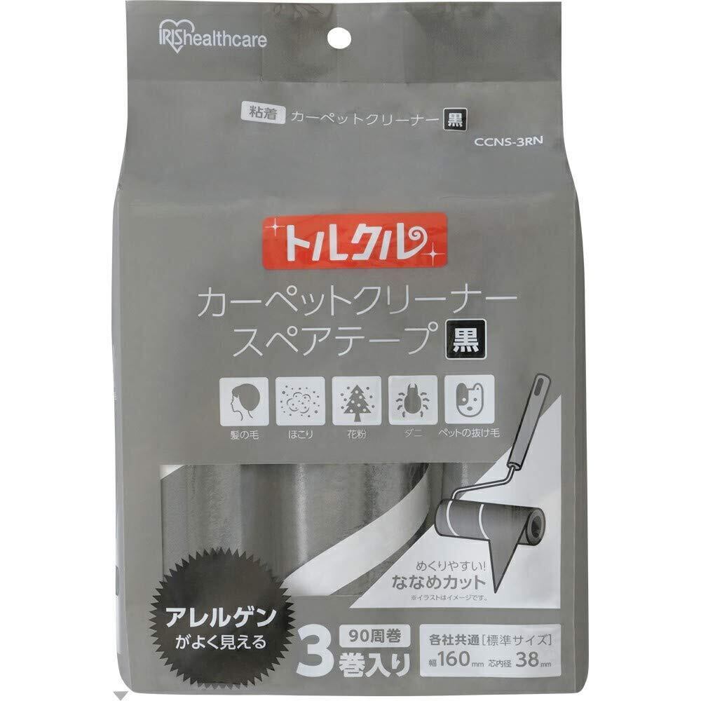 アイリスオーヤマ スペアテープ 粘着クリーナー ブラック 幅16㎝×90巻き トルクル カーペットクリーナー CCNS-3RN