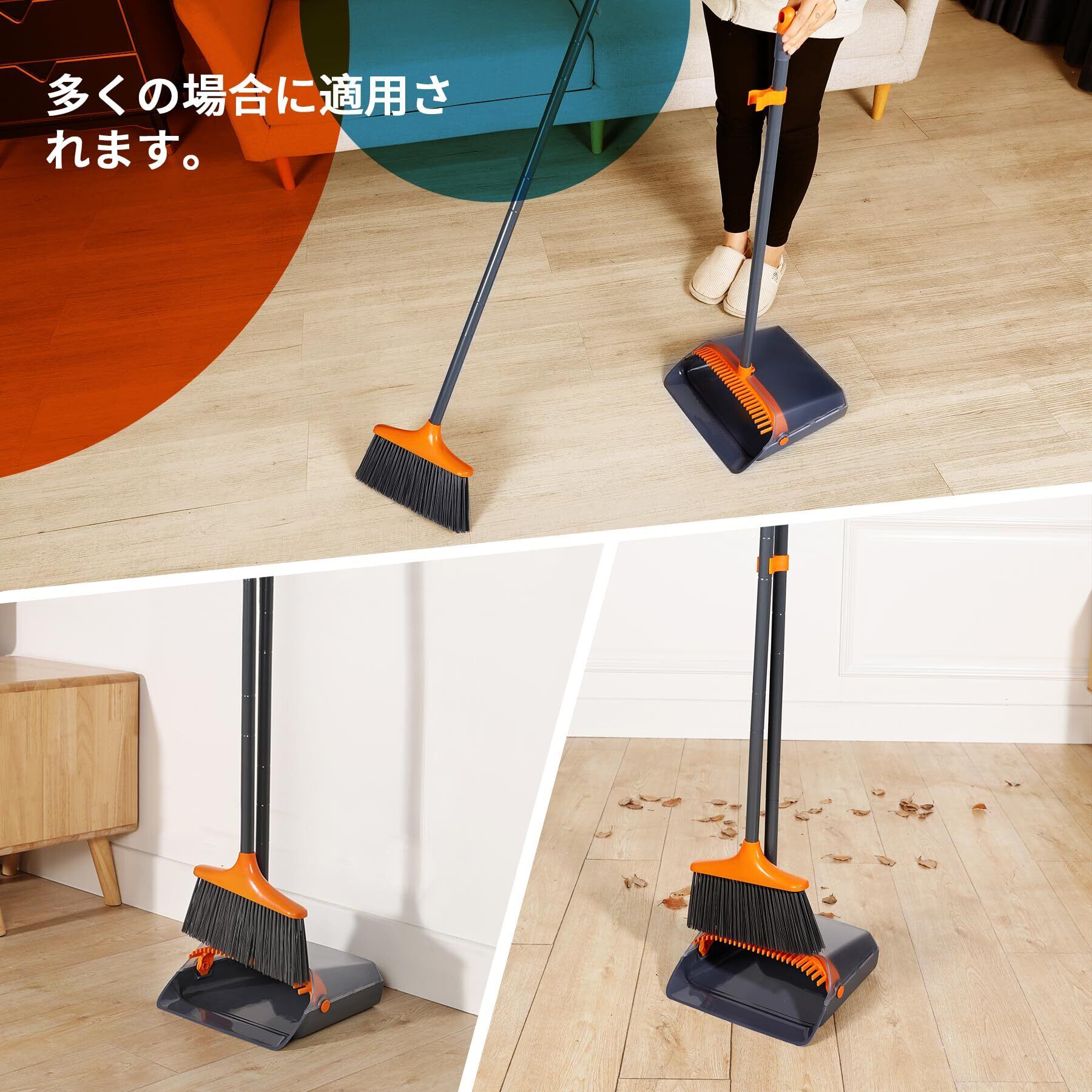 【自由調節 延長ポール付き】ほうきちりとりは人体デザインに適合、ほうきの高さは95〜132 cm、曲げの問題に別れを告げる、一本の延長ポールが付いていますので、ほうきにもちりとりにも使用でき、場所によってご自由に組み合わせます。例えば、天井を掃除する時は延長ポールを使用して長さは132cmになります。【適用場所】おしゃれなデザインで幅広く使用され 石床も木床も、部屋、屋外、玄関、ベランダ、美容室、コンビニ、会社、庭、ガレージ、ペットショップ 学校どが掃除できます。