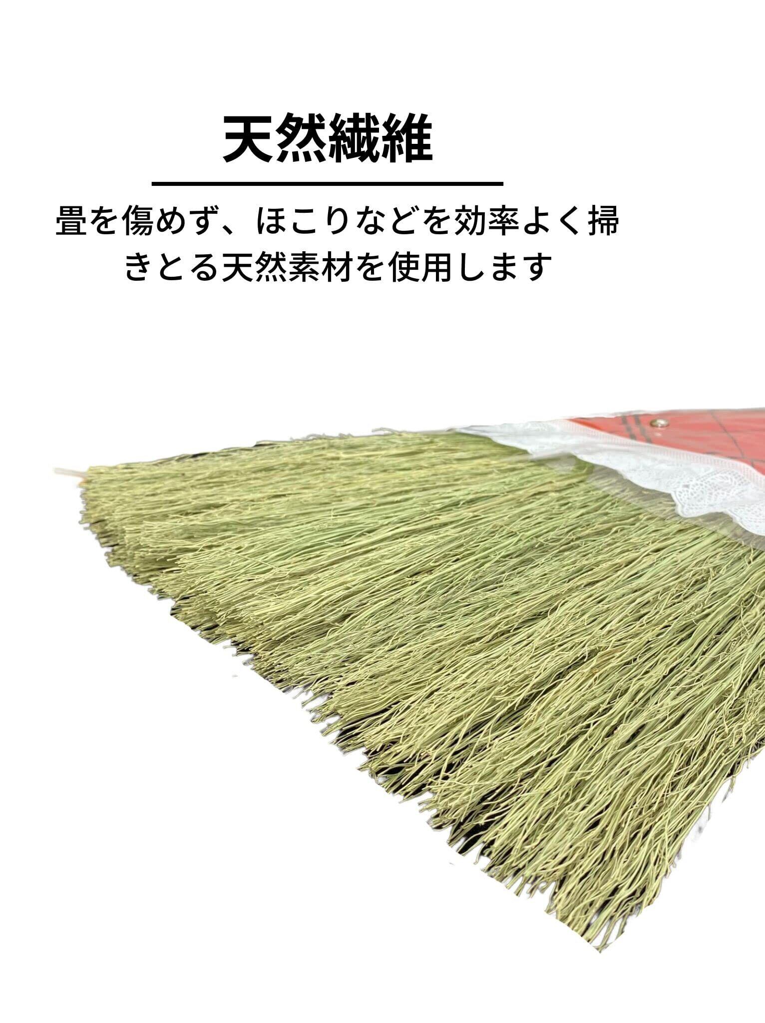 【特徴】天然繊維の穂先がほこりなどを効率よく掃きとります。畳をいためにくい天然素材のほうきです。穂が折れにくく、しなやかに掃くことができます。