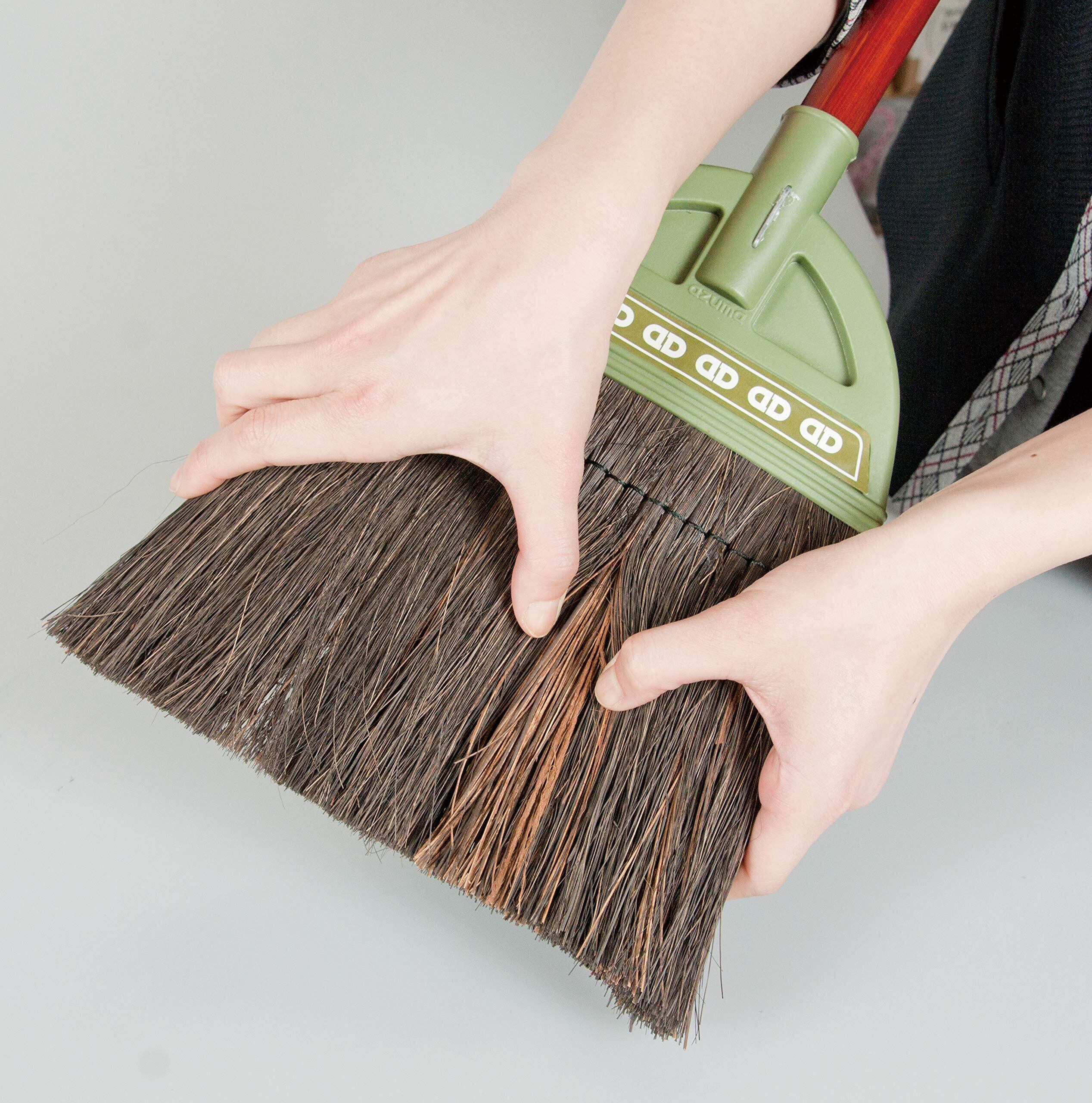 玄関やベランダのお掃除に最適のブレンドほうきです。コシの強い穂が砂利や小石などをかき出し、細くてしなやかな穂が砂ボコリなどの小さなゴミを掃き出します。