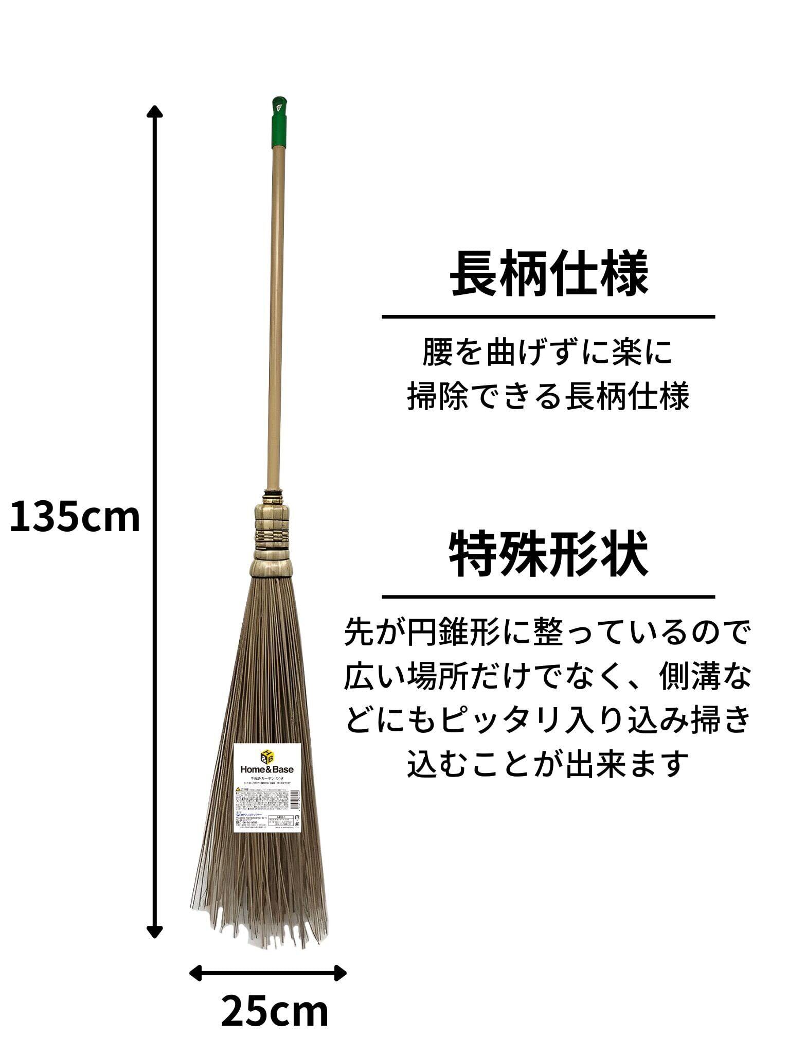 【特徴】竹ほうきに比べ、すっきりしたフォルムで女性にも使いやすいサイズの庭ほうきです。穂先のカタチが円錐形に整っているので広い場所だけでなく、側溝などにもピッタリ入り込み掃き込むことが出来ます。