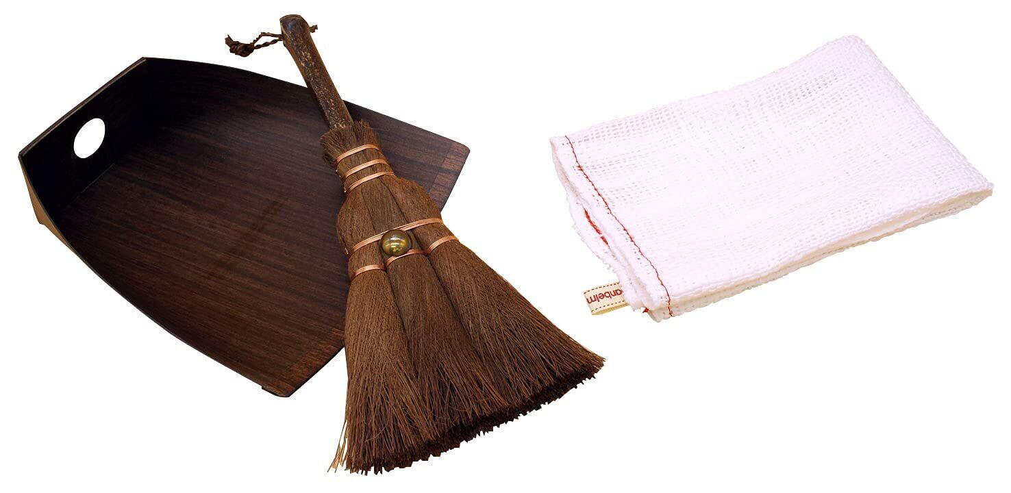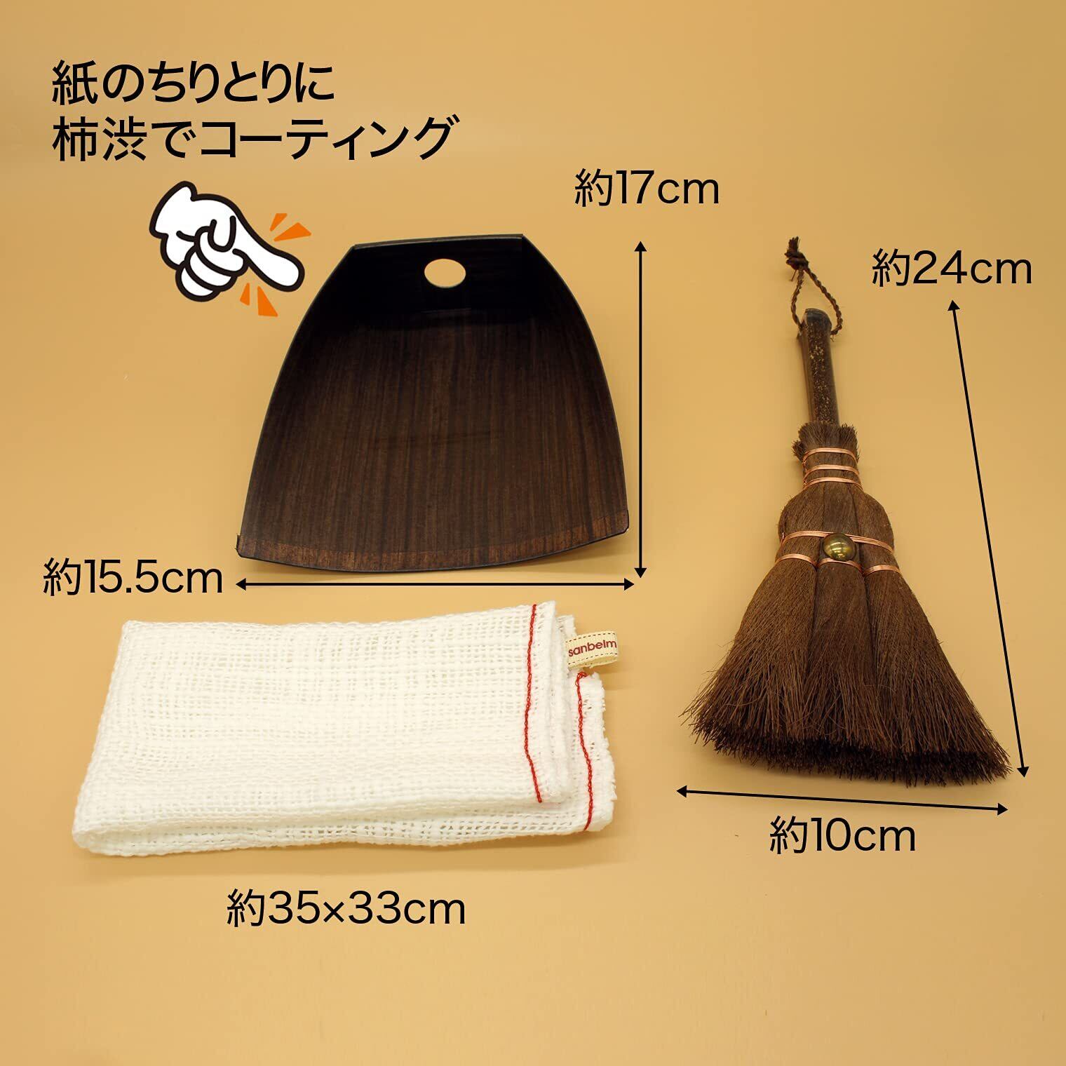 サイズ:棕櫚ほうき:約24×10cm、柿渋塗りちりとり:約17×15.5cm、和紡ぞうきん:約33×32cm