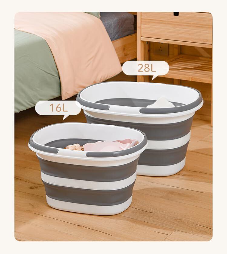 折りたたみ バケツ 16L/28L/35L 大容量 おしゃれ キャンプ 洗濯 洗車 足湯 釣り (グレー, 16L)