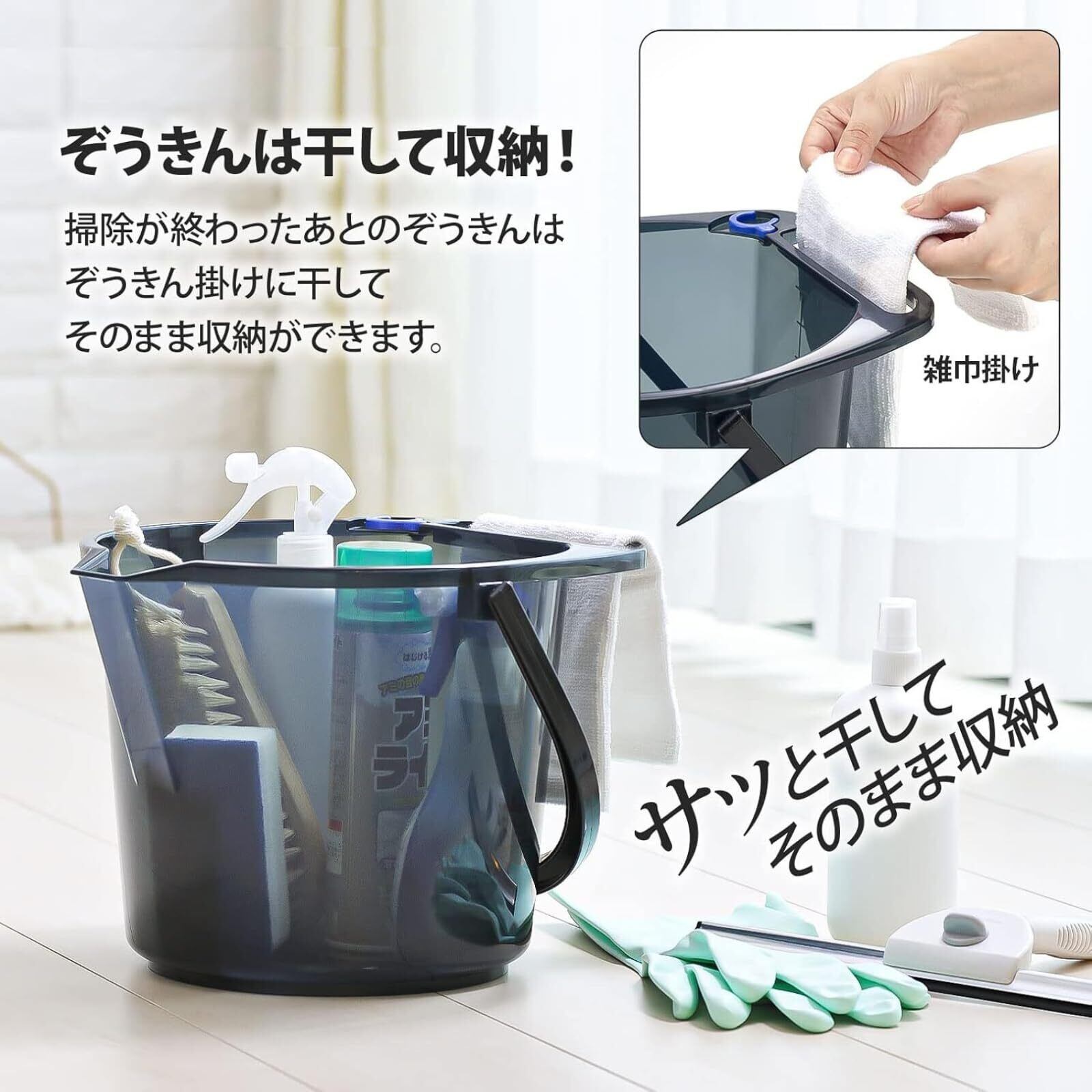■雑巾掛けや横から差し込めるホースホルダーが付いた使い勝手の良いバケツ。