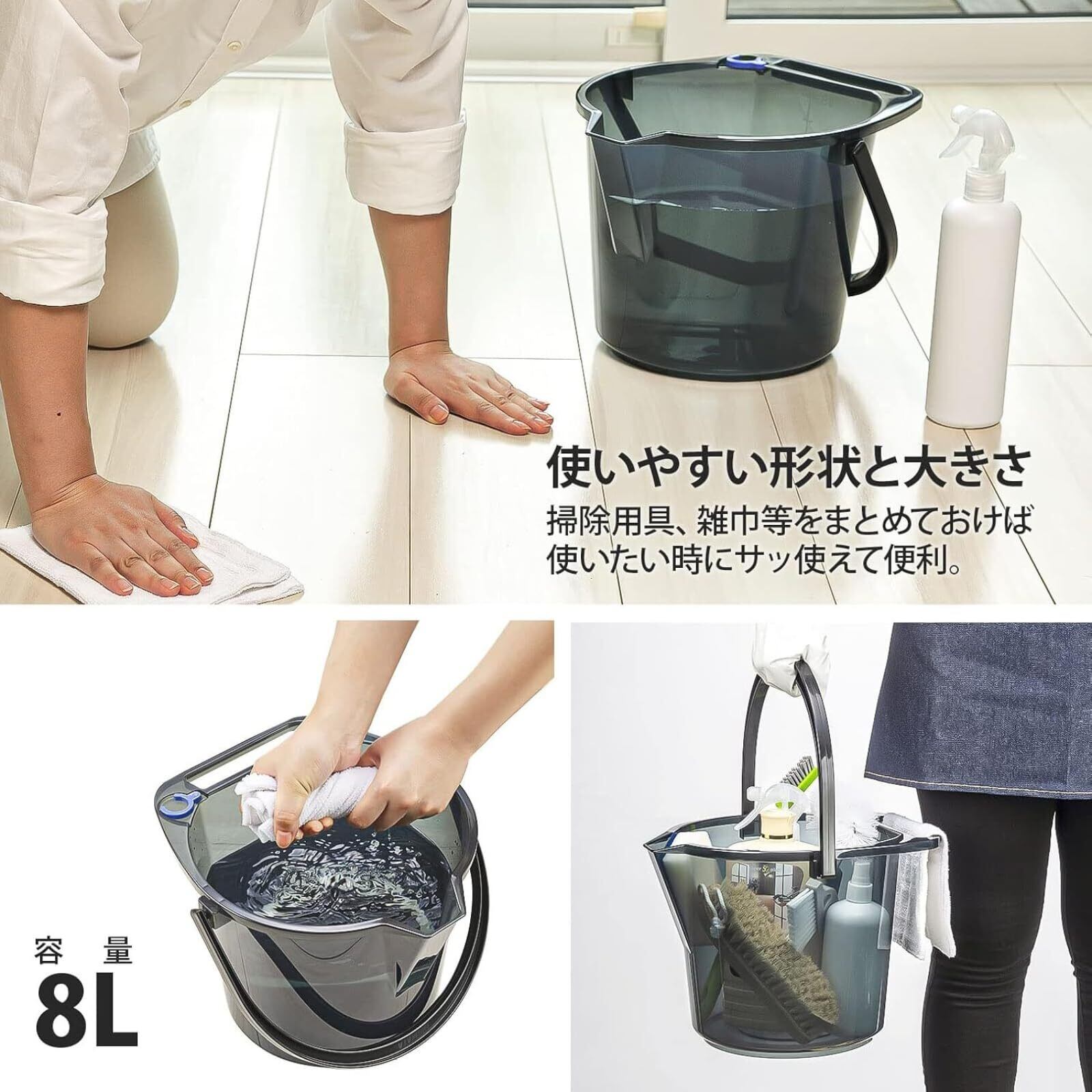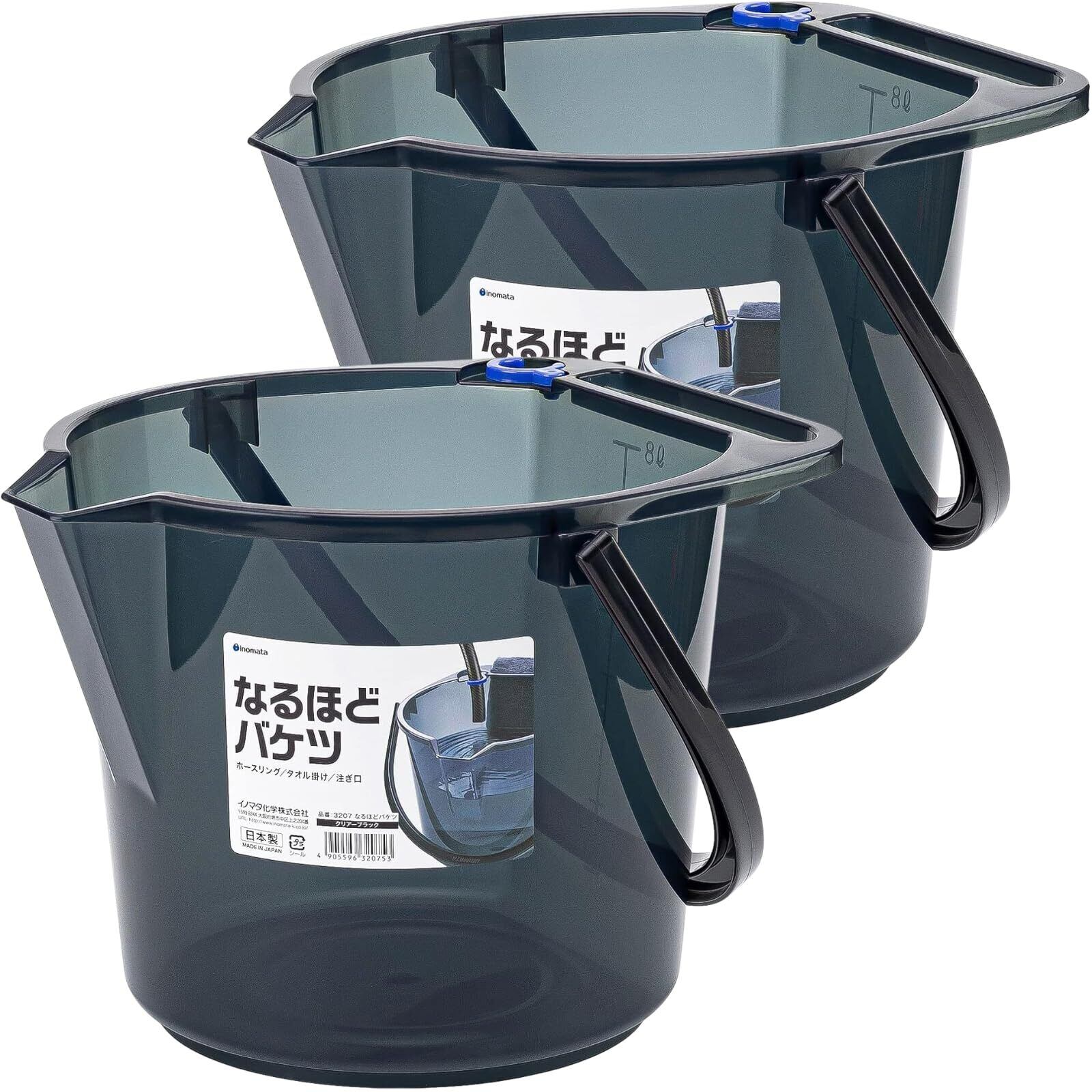 イノマタ化学(Inomata-K) バケツ なるほどバケツ 8L 2個セット クリアーブラック 日本製 透明 アイデア タオル掛け 注ぎ口 ホースホルダー お掃除 清掃 洗車 ガーデニング おしゃれ シンプル 9478