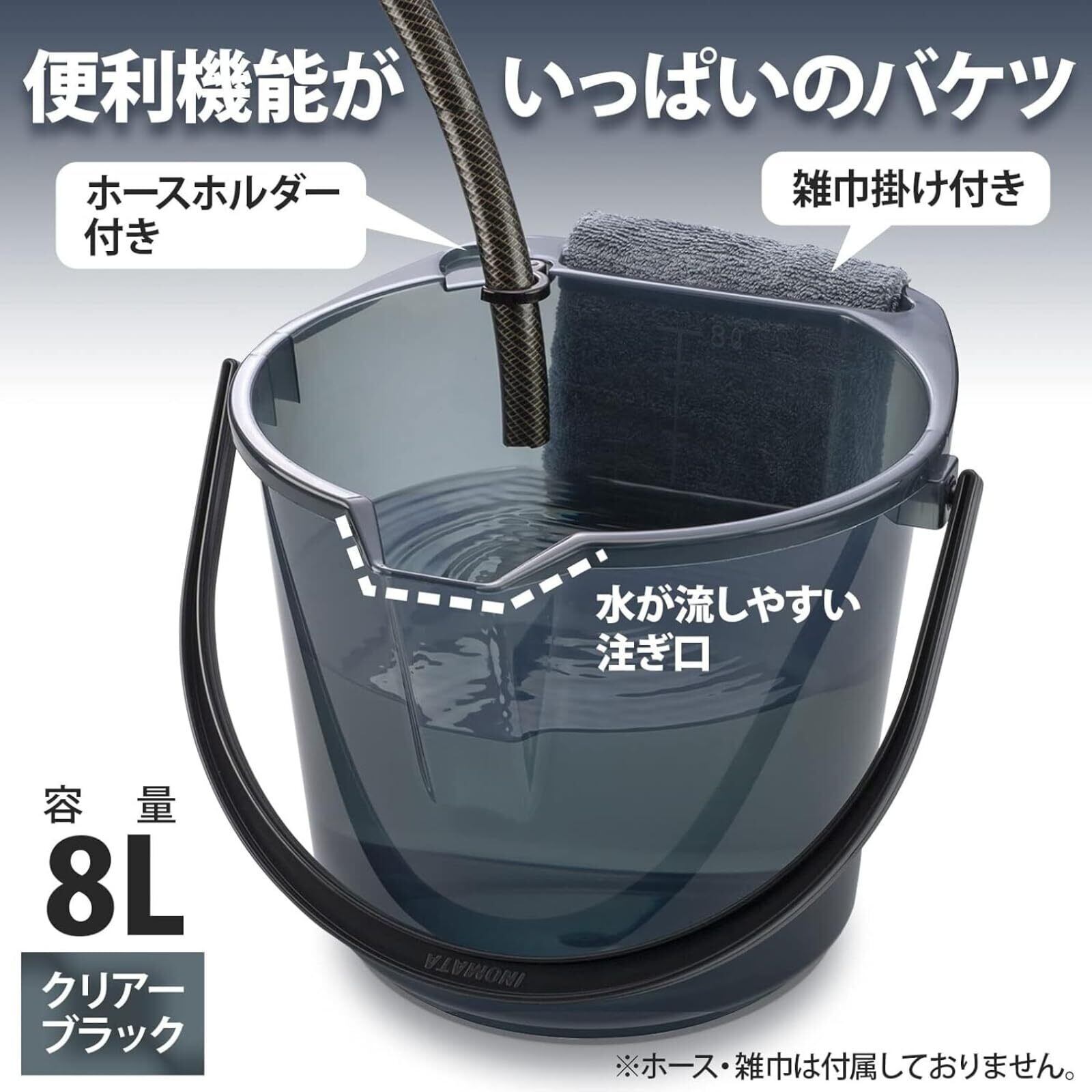 「イノマタ化学 なるほどバケツ」は、スタイリッシュなクリアーブラックのデザインが魅力です!使いやすい8Lのサイズで、日常の掃除や洗車、ガーデニングなど、幅広いシーンで活躍します。
