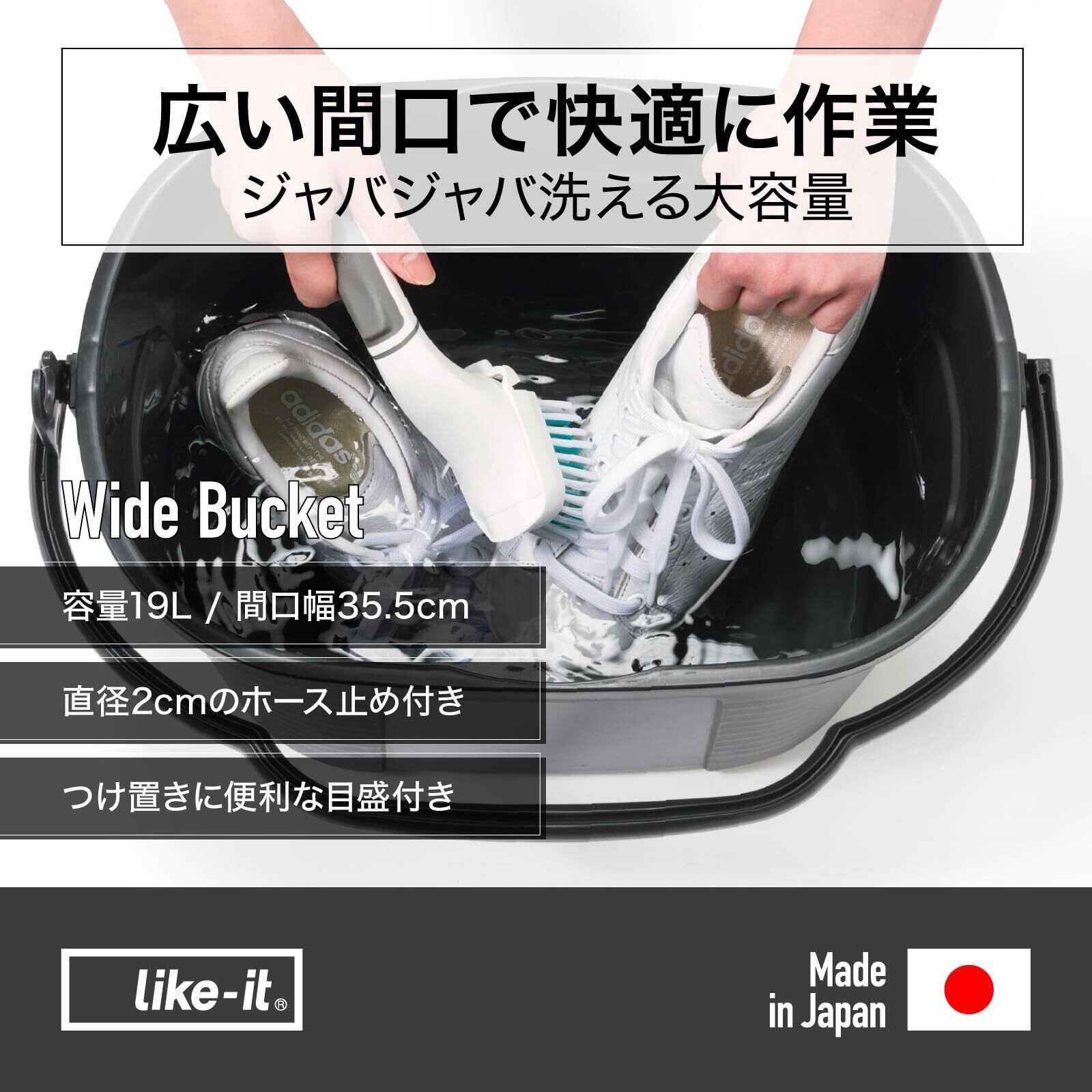 ライクイット (like-it) つけ置きバケツ 19L ワイド 大容量 ブラック 約W41.5×D33×H29.5cm 日本製 目盛り付き 水がためやすい ホース穴付き 洗い桶 洗濯桶 つけ置き洗い 洗車 ガーデニング