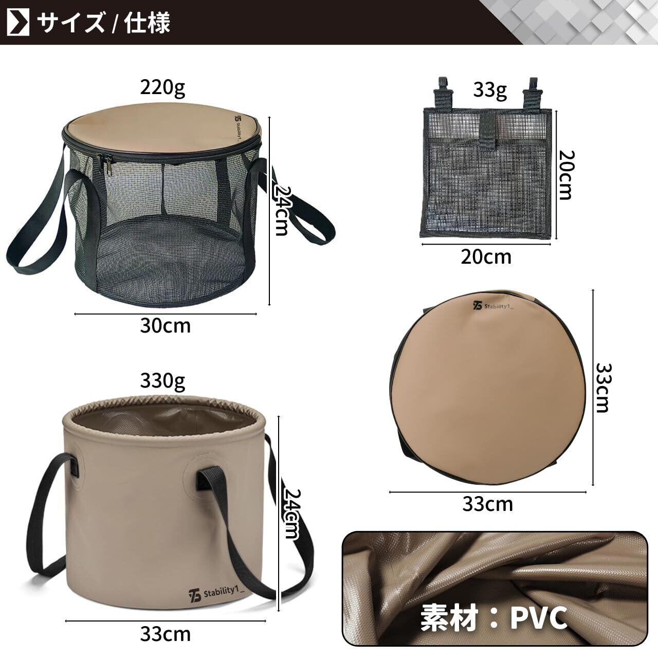 Stability1_【現役キャンパー考案】バケツ 20L キャンプ アウトドア メッシュ ポケット 多機能 シンプル 防水 洗車 防災 釣り 大きめ ブラック(収納ケース付き)