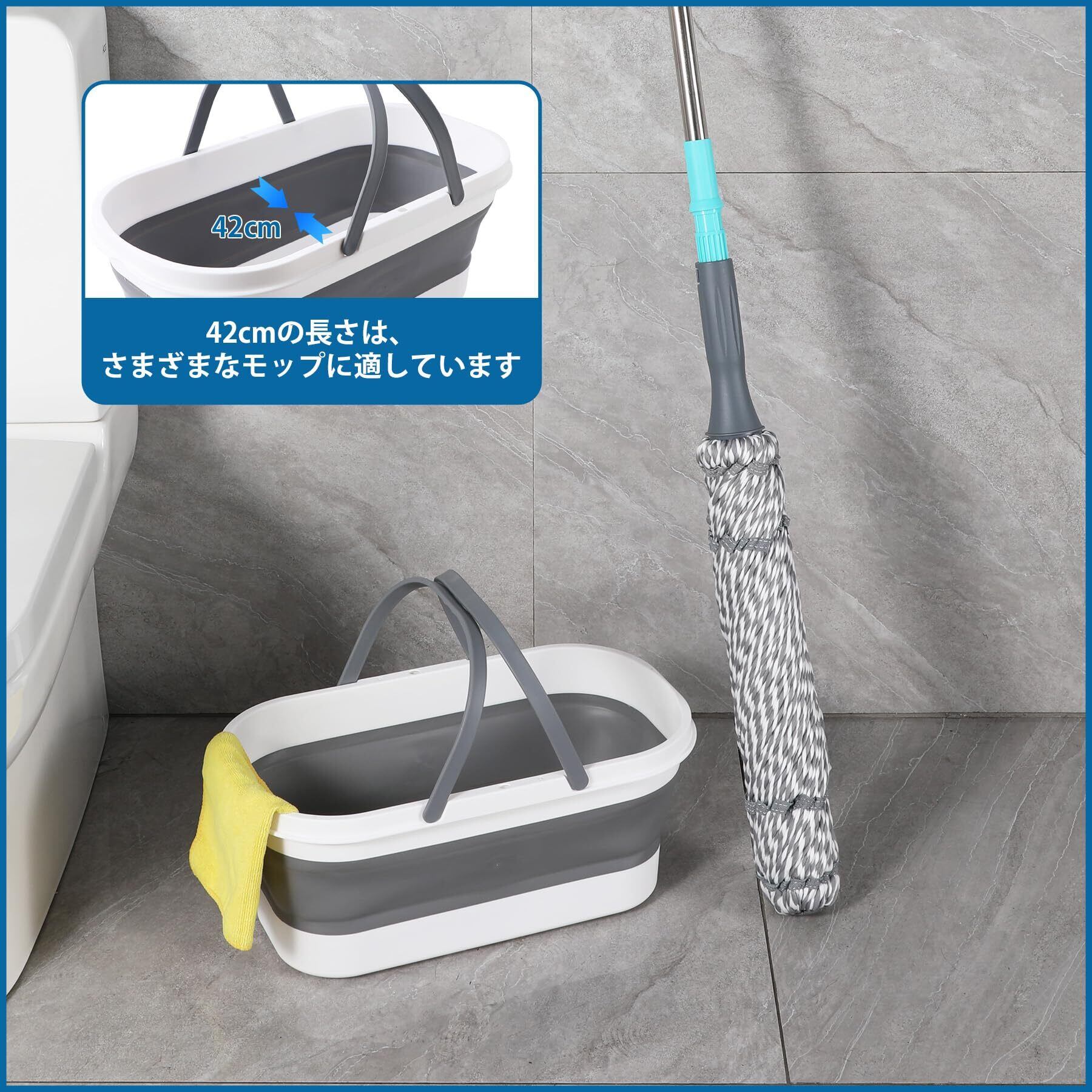 【ホイール付き】:この折りたたみモップバケツの特徴は、底部にキャスターが装着されているデザインです。このため、掃除中でも力を入れずに、バケツを部屋から部屋へ楽に移動させることができます。取っ手がついているので持ち運びにも便利です。専用の出水口が付いているので、水をこぼさずに簡単に注ぐことができます。キャンプやガーデニングに最適です。折りたたむと非常に小さくなるため、収納や持ち運びに最適です。