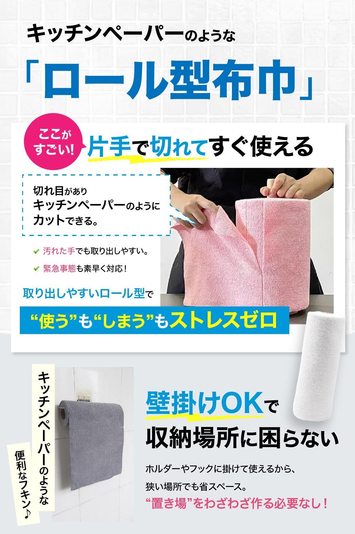【便利なロール型。使いたい時にサッとカット!】 キッチンペーパーのように、1枚ずつ引き出してカットできるロール型です。必要な分だけ使えるから無駄がなく、収納もスリム。壁掛けホルダーにも対応可能!