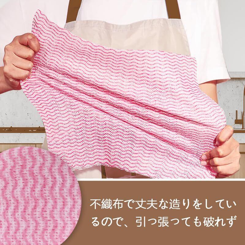 この使い捨てぞうきんは、テーブルの拭き掃除やキッチンの油汚れも簡単に落とせます。水拭き、乾拭きのどちらにも対応しており、さまざまなシーンで役立ちます。用途を選ばず、頼れるアイテムです。