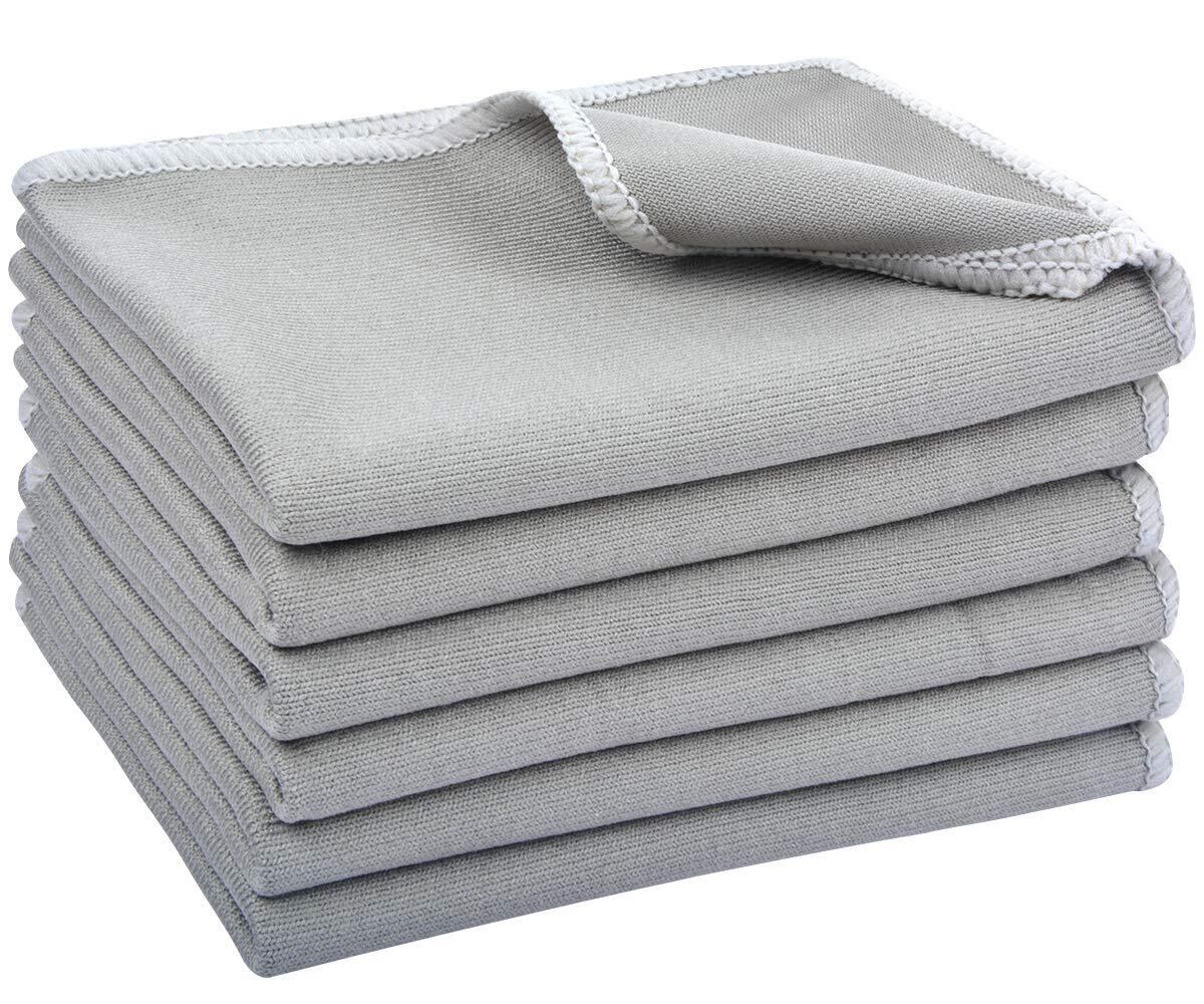 SINLAND 速乾 マイクロ ファイバー ガラス グラス 拭き クロス キッチン 食器 拭き クリーニング タオル 6枚 30cmx40cm グレー