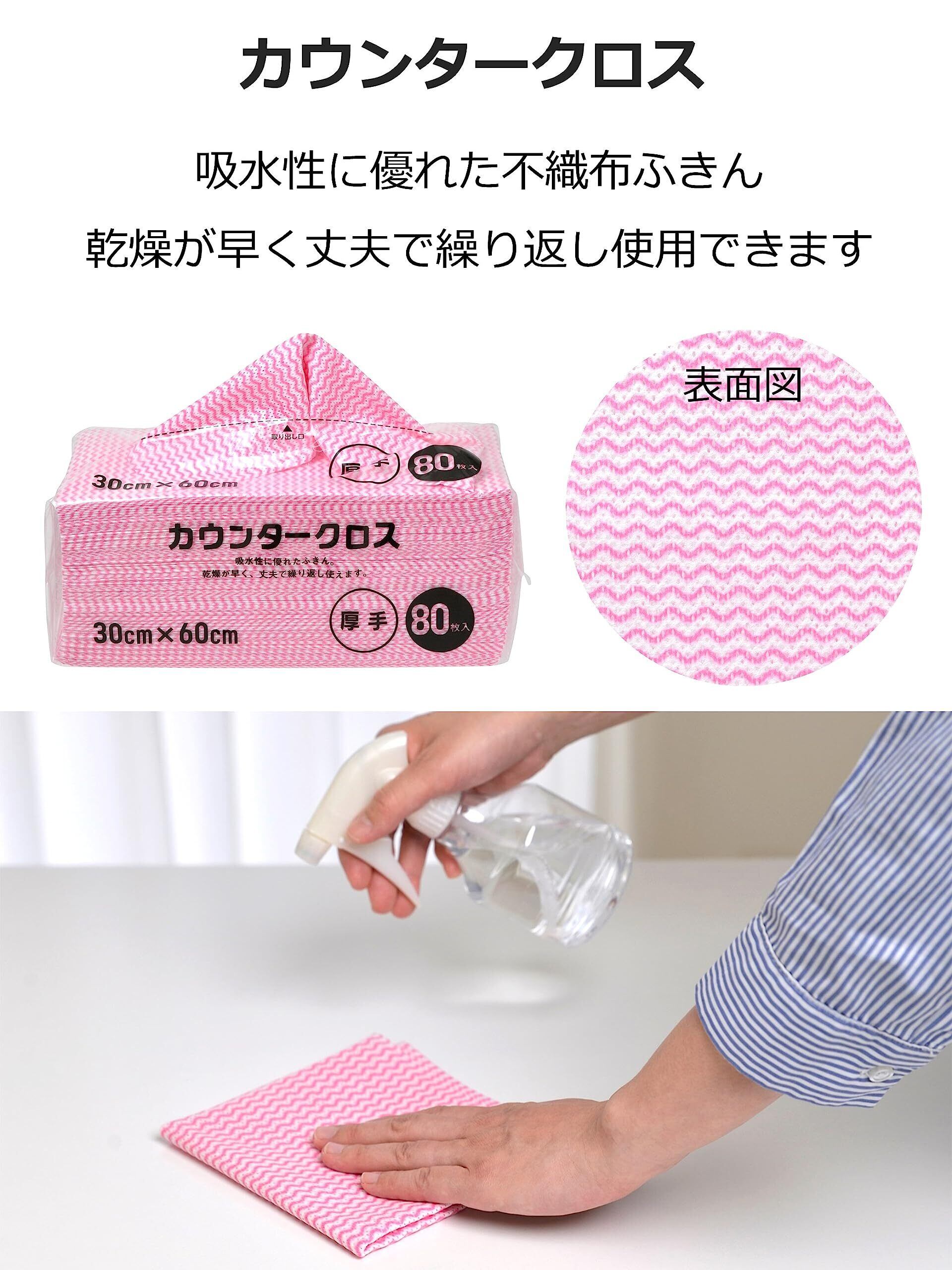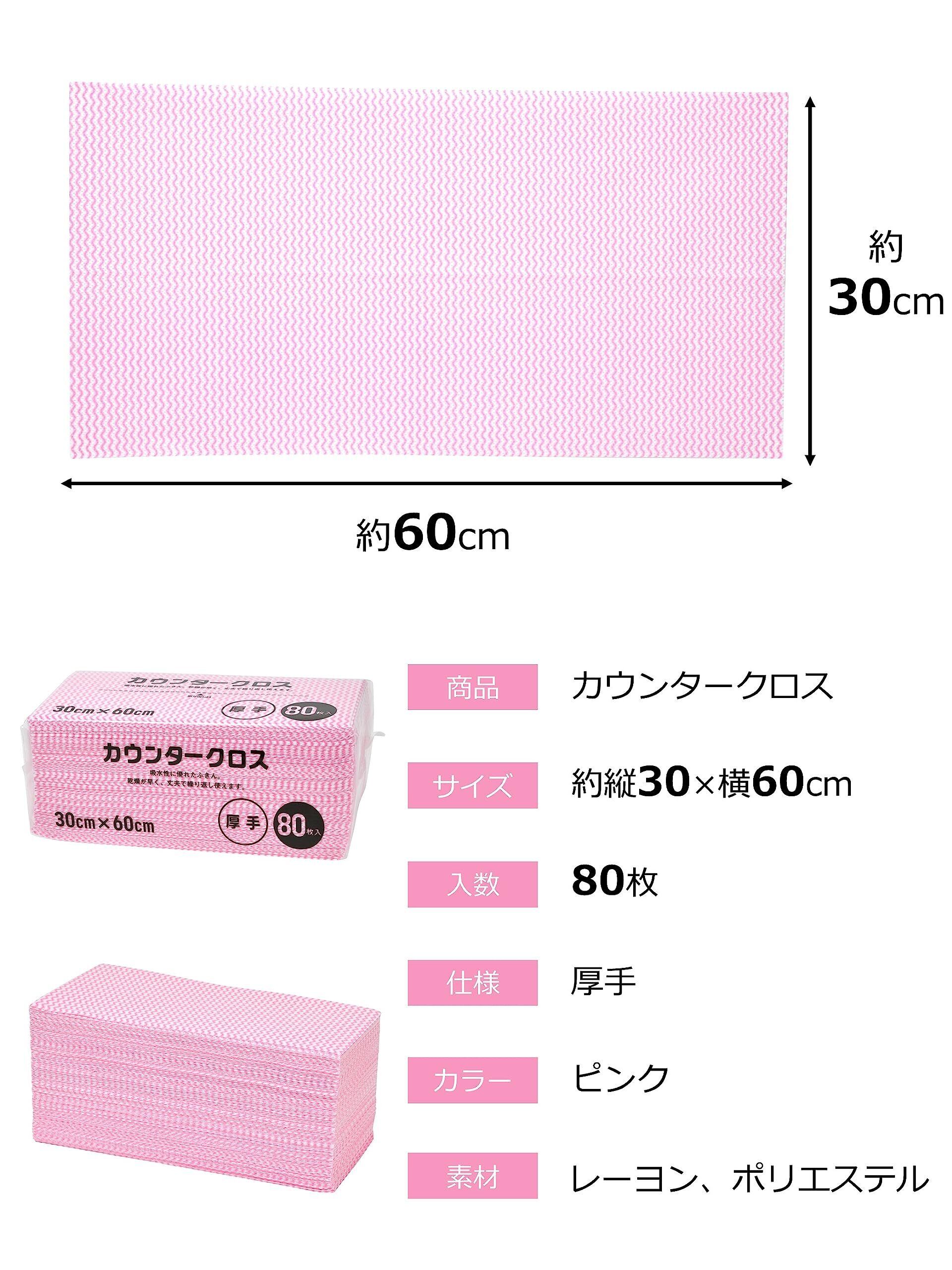 大和物産(Daiwa Bussan) カウンタークロス 厚手 80枚 ピンク 約60×30cm 使い捨て 不織布 ふきん テーブルダスター 業務用
