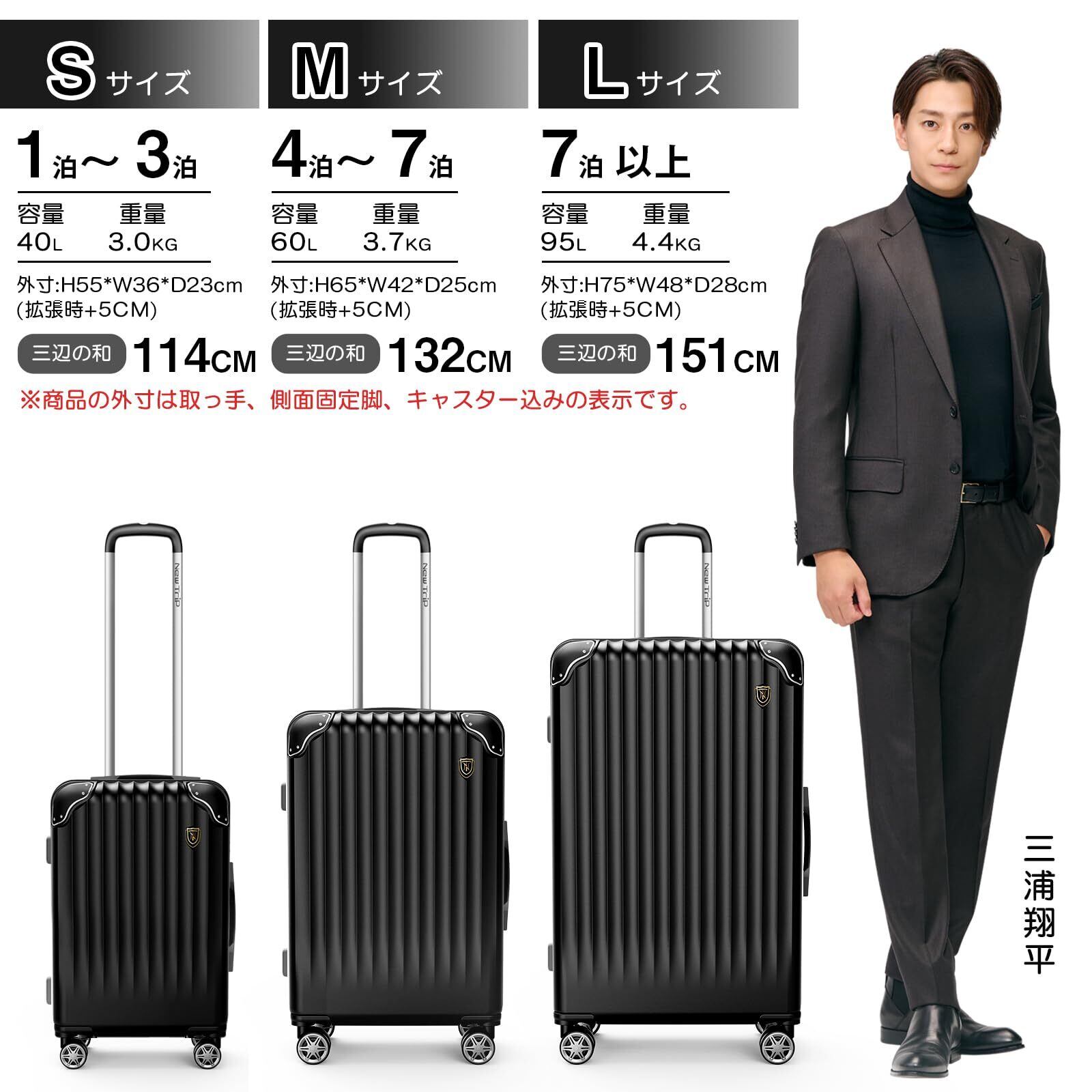 \【◆[New Trip] スーツケース キャリーケース 拡張機能付き 機内持ち込み 軽量 大型 S/M/Lサイズ キャリーバッグ 耐衝撃 大容量 ファスナータイプ 静音 ダブルキャスター TSAロック 海外 旅行 ビジネス 出張(ブラック、Mサイズ:4~7泊/60L)!】/