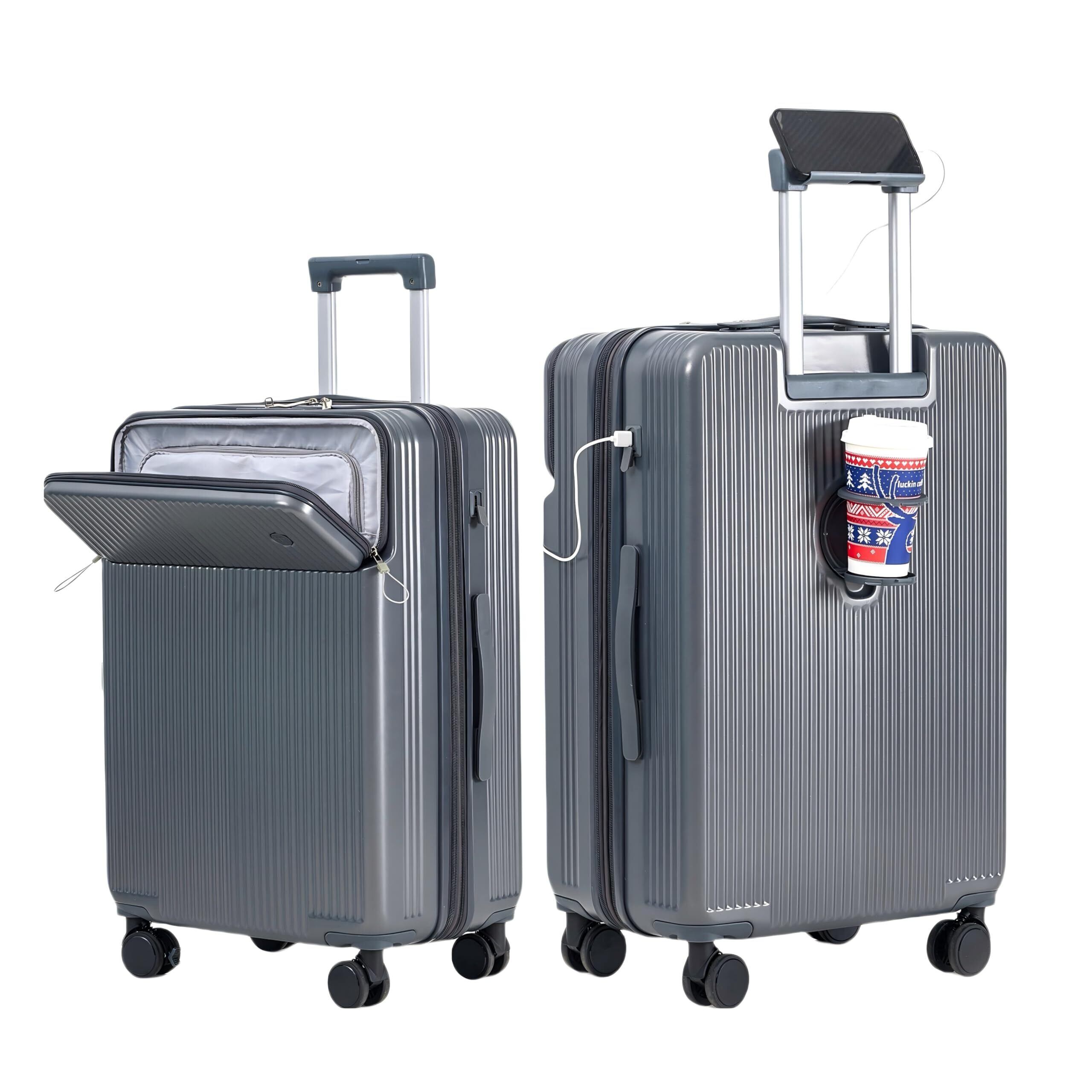 [Yuweijie] スーツケース 拡張型 フロントオープン 機内持ち込み ストッパー付き キャリーケース sサイズ 2泊3日 軽量 大容量 多機能 トップポケットパソコンケース キャリーバッグ USB カップホルダー付き 携帯スタンド 頑丈 TSAロック 360度回転ブレーキ機能 修学 トラベル 出張 40リットル グレー