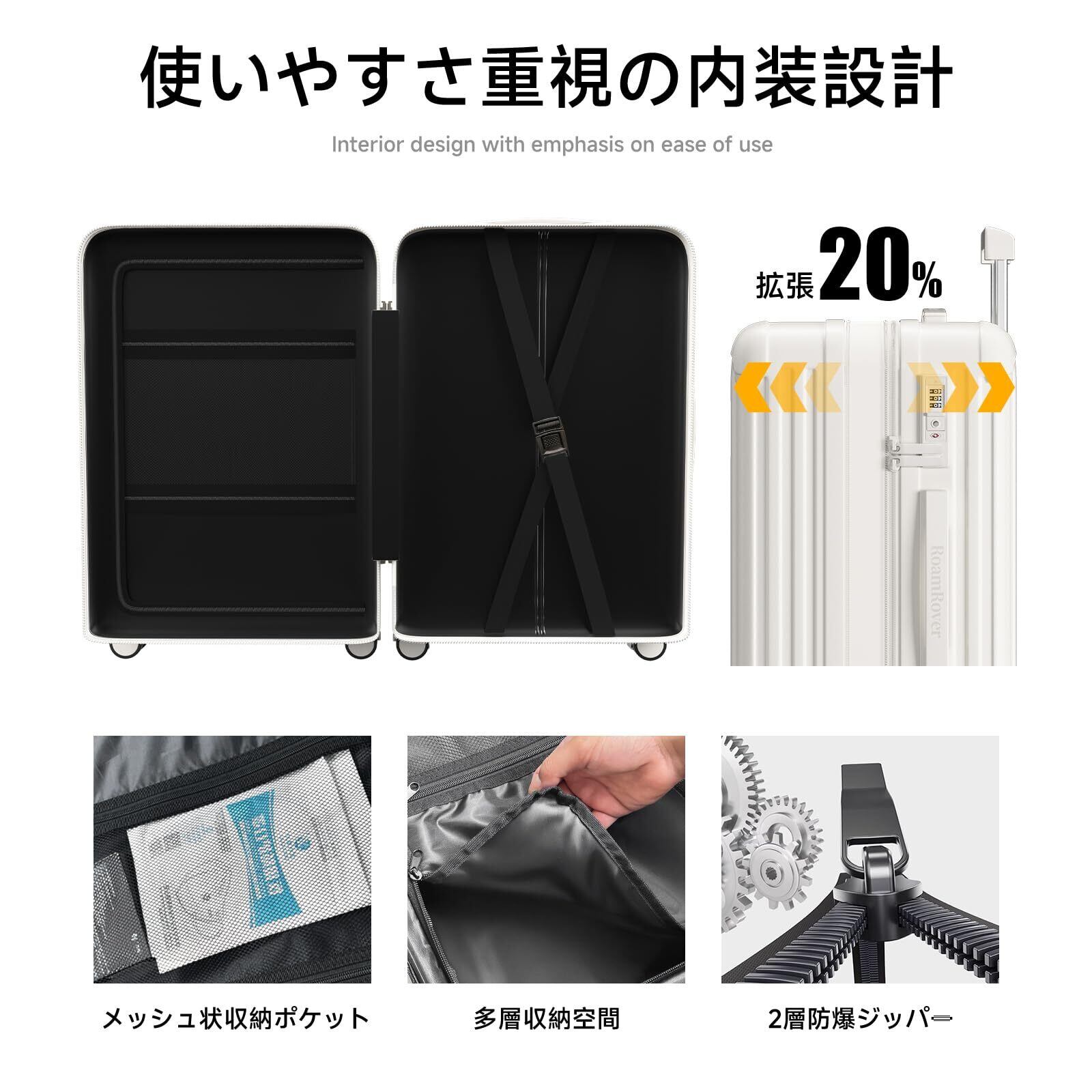 【拡張可能・にじゅう防盗ファスナー】このスーツケースは、革新的な拡張デザインを採用しており、軽く引っ張るだけで20%の容量を拡張できます。これにより、より多くの収納スペースを提供し、長旅やショッピング後の帰りに特に便利です。さらに、ダブルレイヤーの防犯ジッパーを装備しており、セキュリティが強化されるだけでなく、ジッパーが予期せず開くのを防ぎ、荷物の安全を確保します。ビジネス出張でもレジャートリップでも、このスーツケースはあなたのニーズを満たし、便利で安心な旅行体験を提供します。※注意:拡張後は機内に持ち込めません。