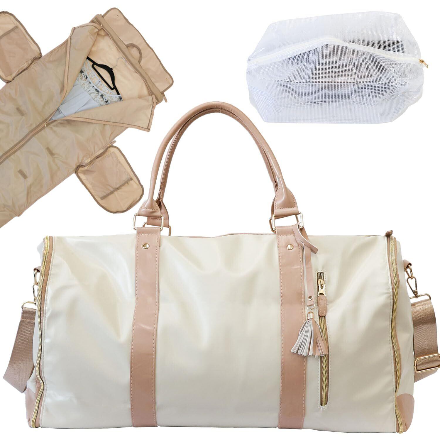 \【◆[Rocotto] ボストンバッグ ガーメントバッグ 撥水 スーツバッグ ドレスバッグ 旅行カバン レディース 折り目なし おしゃれ (アイボリー×ベージュ)!】/