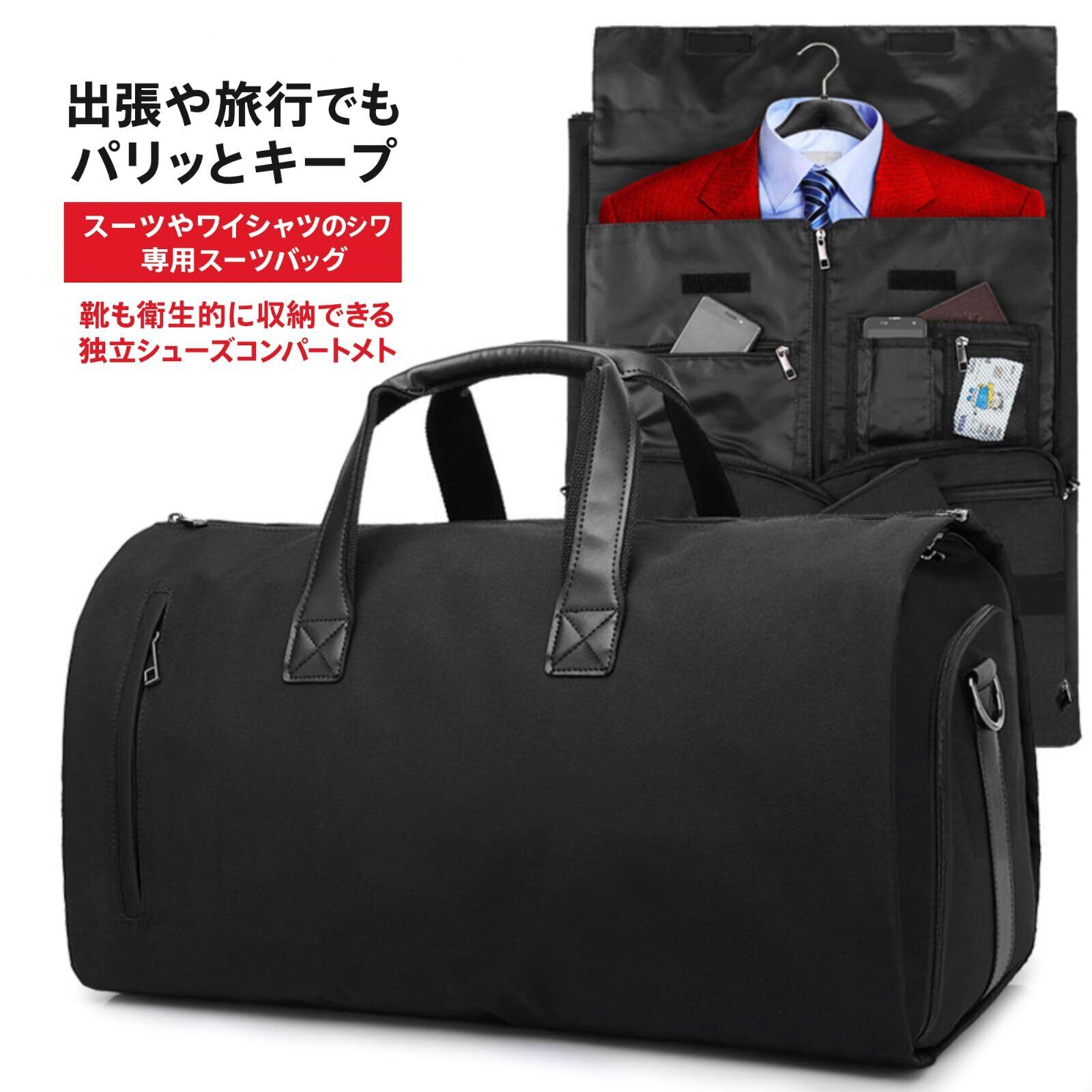 【スーツシワ防止対策】 ◆ 拡張可能スーツ収納ポケット:収納スペースを広げ、衣類をシワなく持ち運び可能 ◆ 頻繁な出し入れに最適:スーツを頻繁に出したり入れたりする方におすすめ ◆ オールインワン収納:スーツ・ネクタイ・着物・靴・小物など一式をコンパクトに収納 ◆ 多用途に活躍:旅行・出張・面接・冠婚葬祭など、移動時の持ち運びに便利