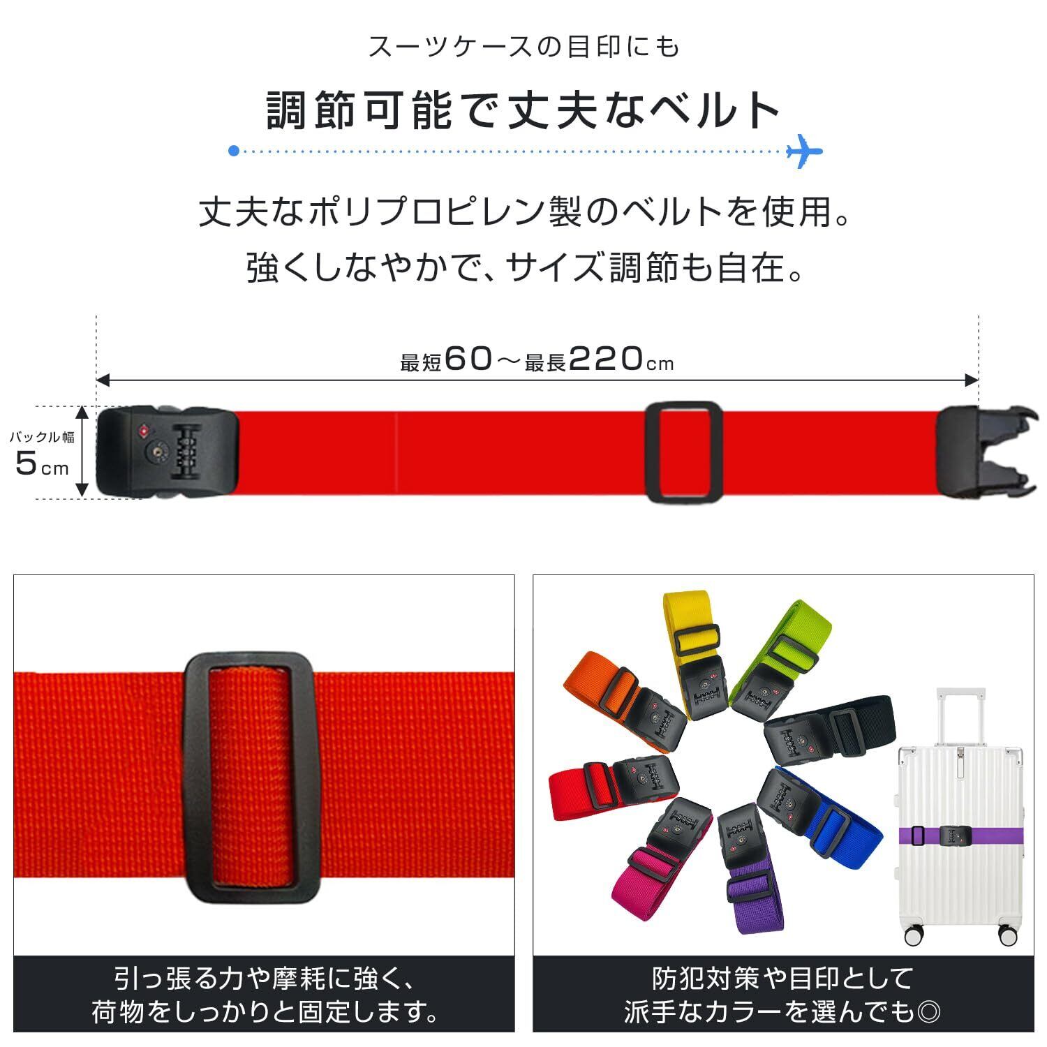 ・【長さ調整可能】長さ約115〜200cmまで調整でき、幅広いサイズの各種スーツケースに対応。