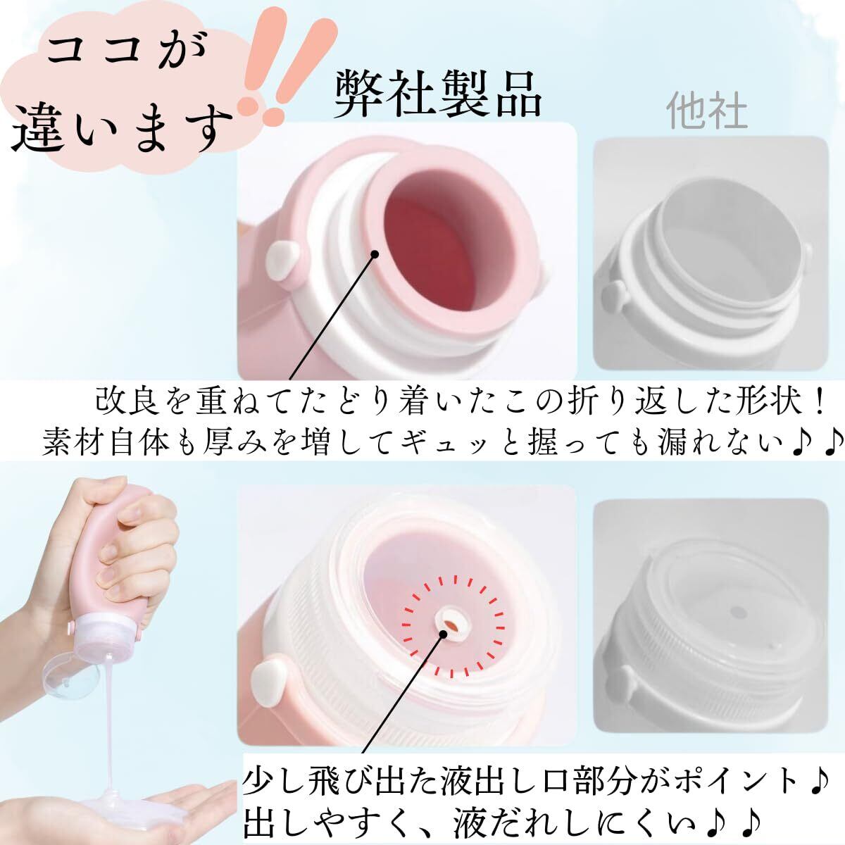 このトラベルボトルは、柔軟なシリコン素材を使用しており、しっかりとしたシリコンバンドで持ち運びも安心です。持ち歩く際の液漏れの心配もなく、旅行中も安心してご使用いただけます。