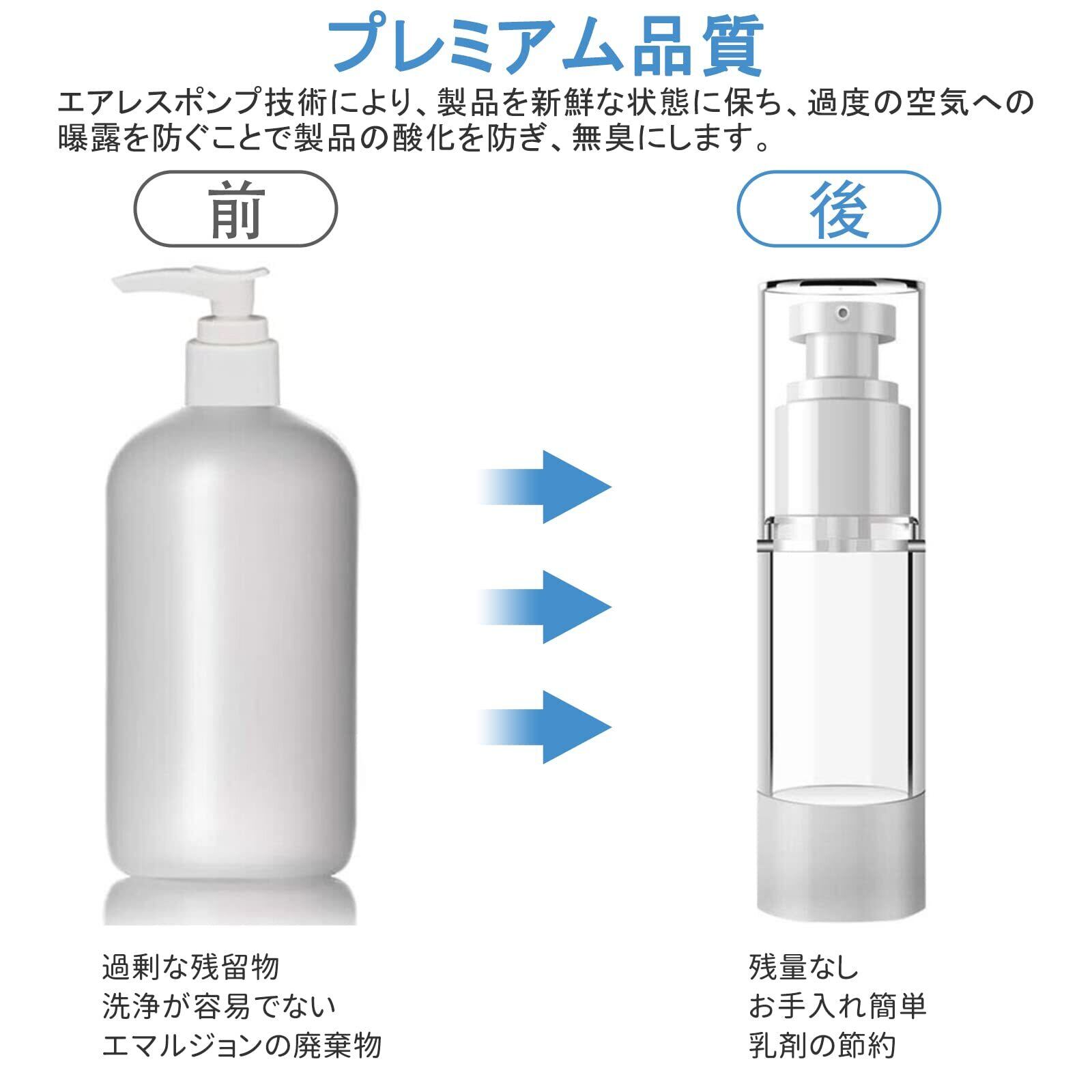 再利用可能:エアレスポンプボトルは、製品がディスクを介してポンプに押し込まれる際の無駄を最小限に抑えるのに役立ちます。再利用可能、何度も何度も空になったときに追加できます。
