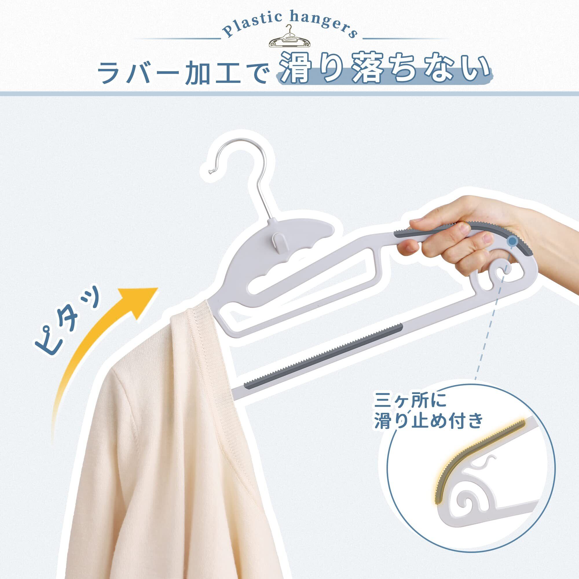 【傾けてもすべらない】ラバー加工でどんな衣類もしっかりキャッチ。