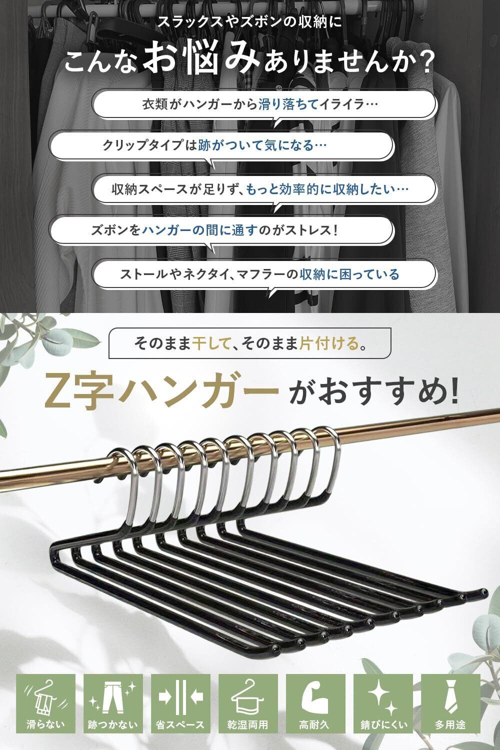 【万博出展ブランド】1秒で掛けられるZ字型×滑らない加工済み [ズボン・タオル掛けに最適] スラックスハンガー ズボンハンガー (ブラック 20本セット)