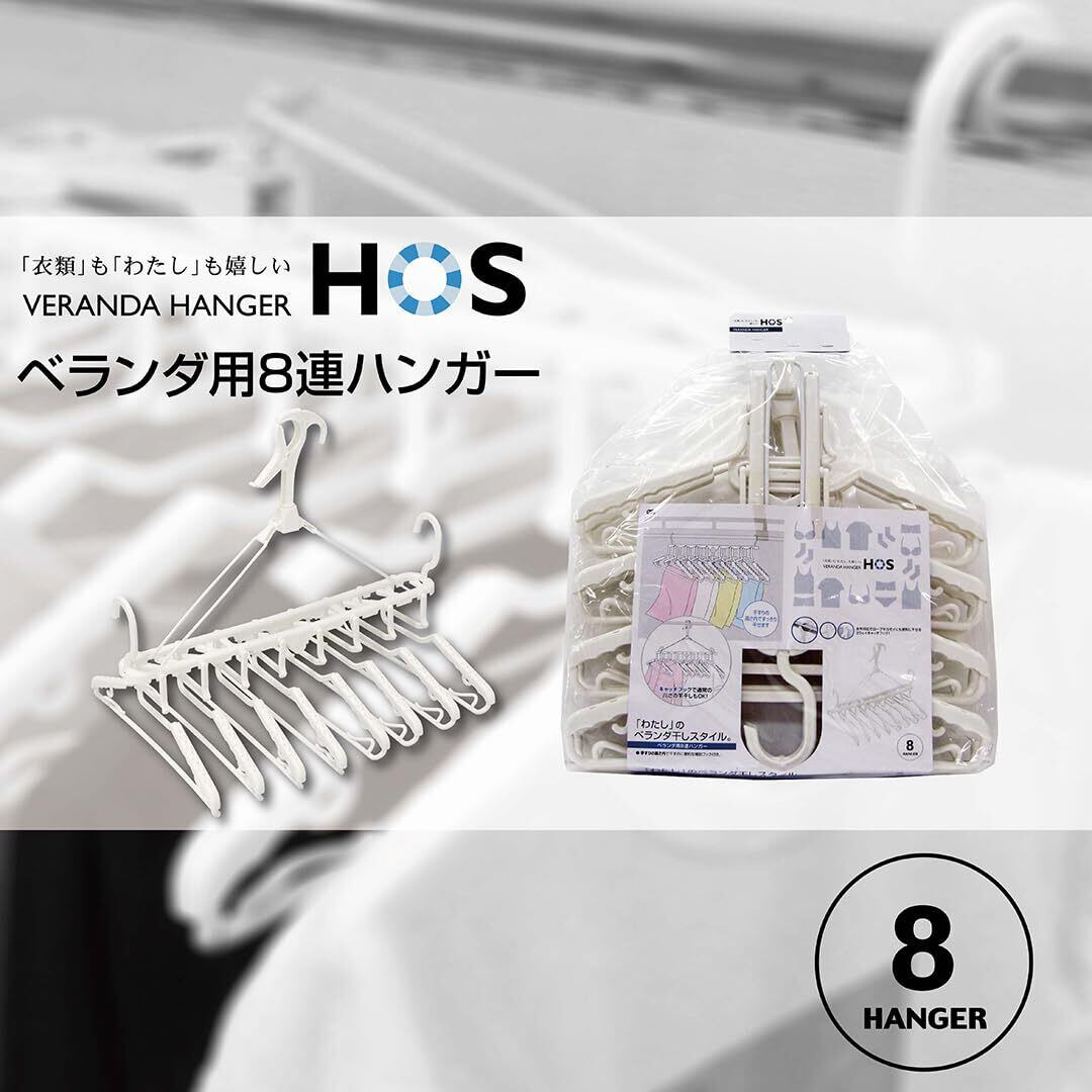 オーエ ポリプロピレン製 洗濯 物干し ハンガー ホワイト 約縦38.5×横53×奥行47cm HOS 8連 ベランダ用 手すりの高さで 干せる